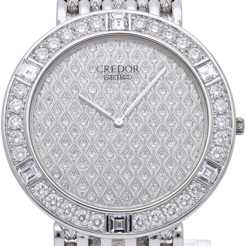 国産ブランド「セイコー」を代表するドレスウォッチライン「クレドール」。デザイン性も良く、ベゼルにはダイヤモンドが施されたエレガントな1本。