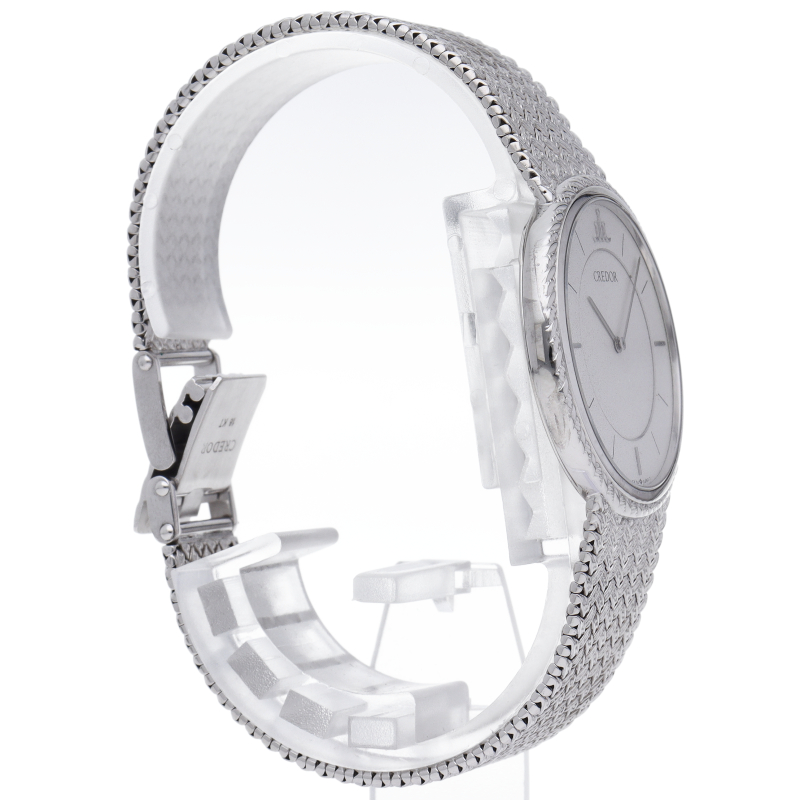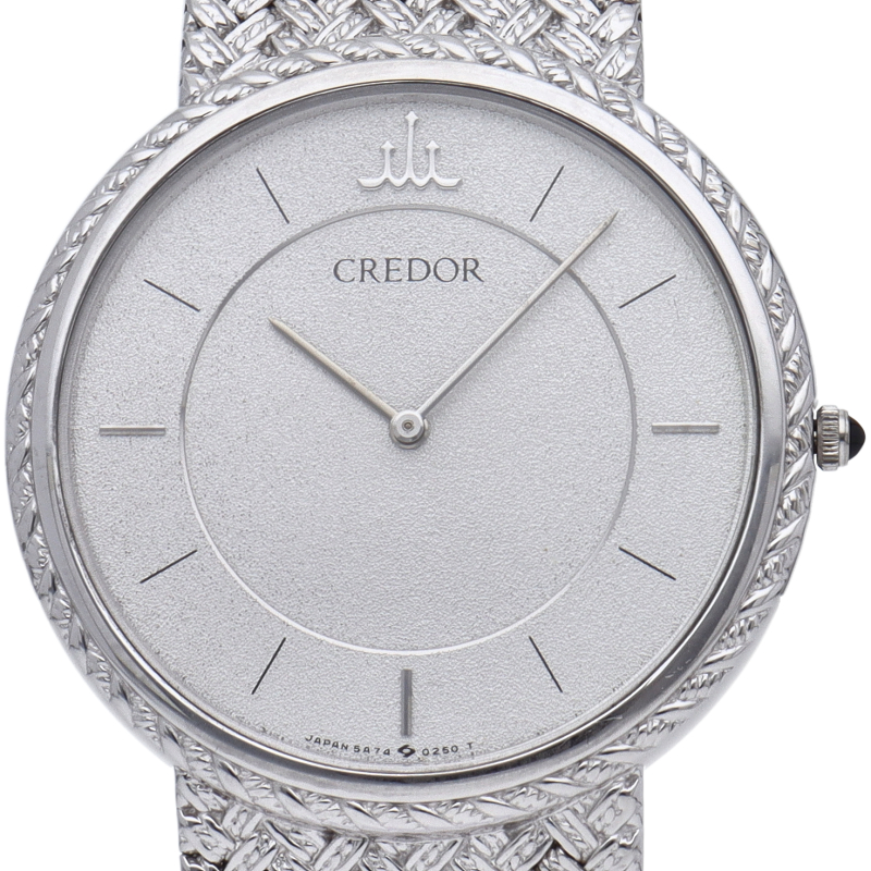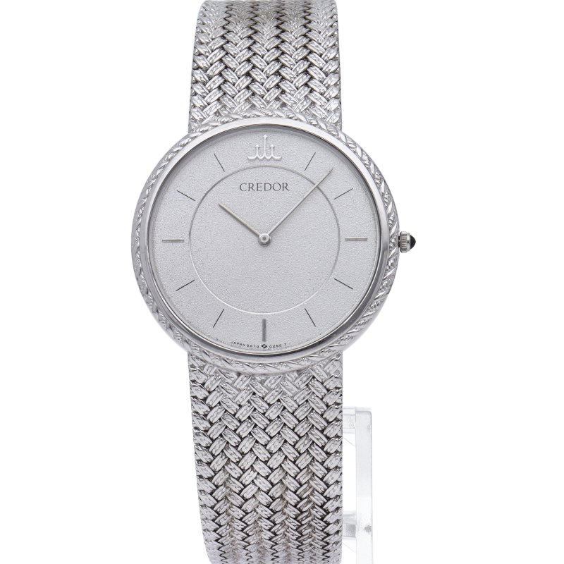 国産ブランド「セイコー」を代表するドレスウォッチライン「クレドール」。ホワイトゴールドを贅沢に使用し、シンプルで上品なデザインがエレガンスな1本。