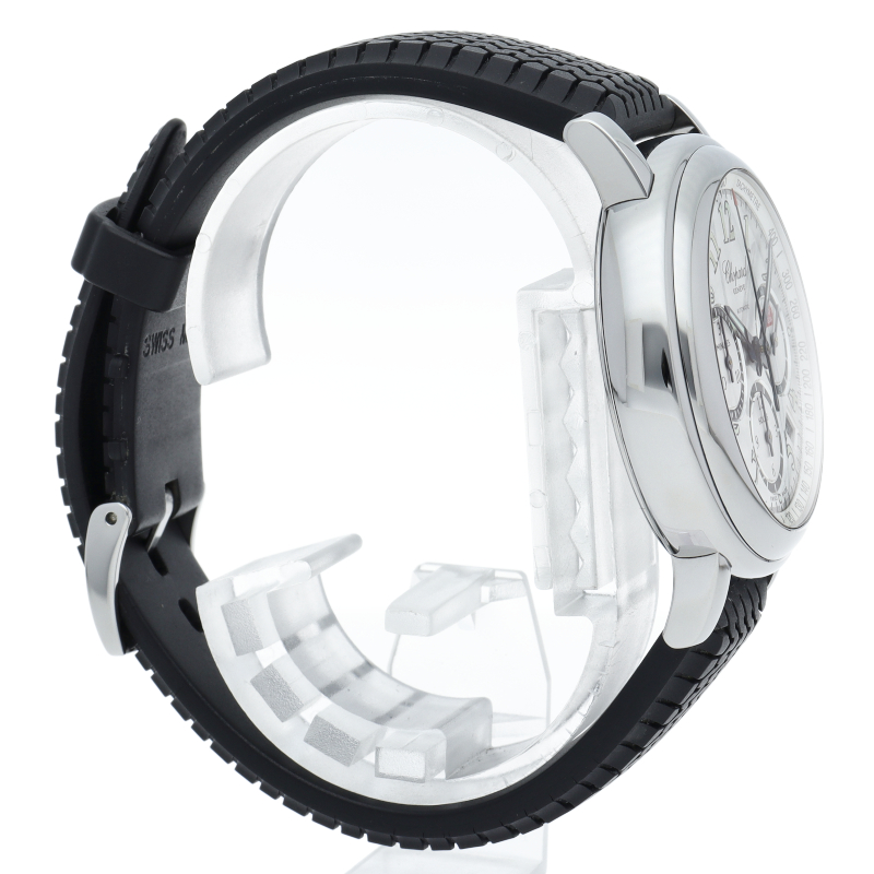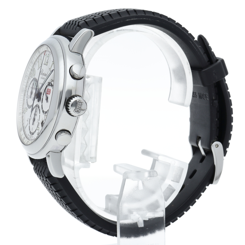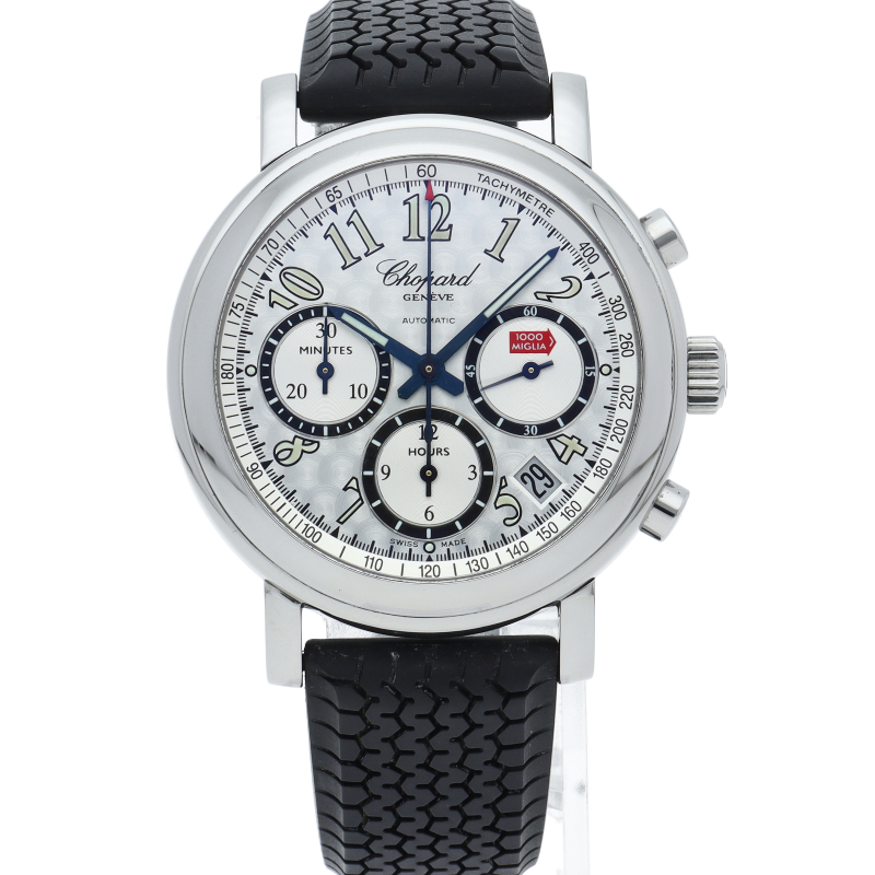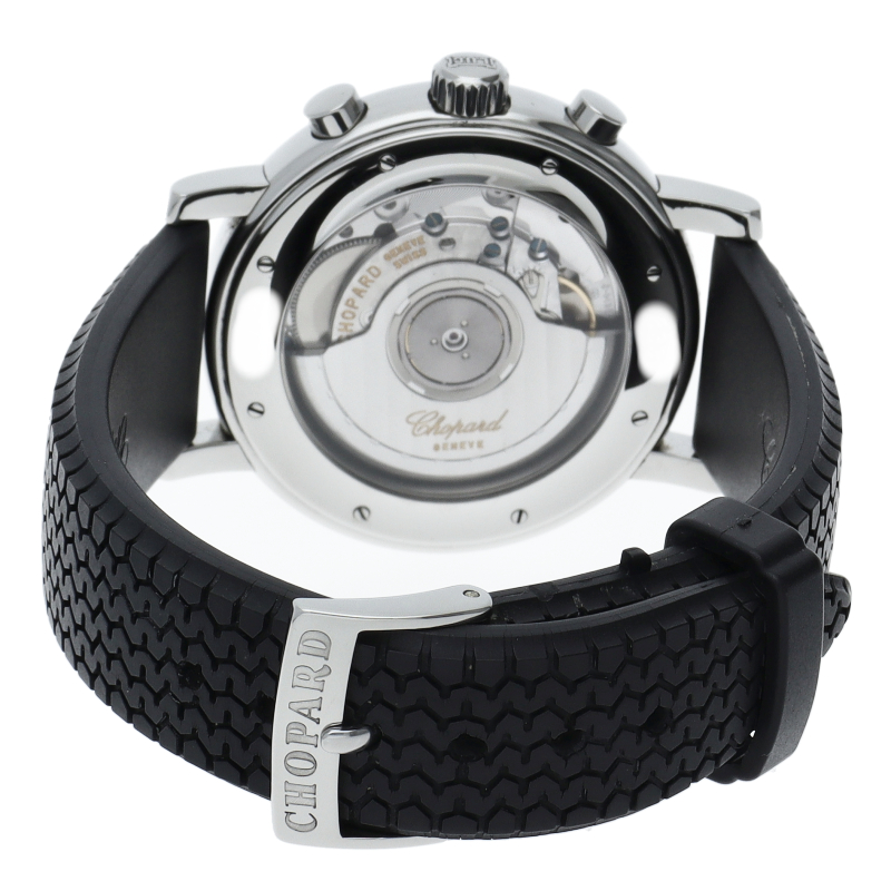 有名なヴィンテージカー・レースであるミッレミリアを記念して作られたクロノグラフで1999年の限定モデルです。ダイヤルにはその名の由来になった1000mile(ミッレミリア)がデザインされており、純正のラバーベルトはタイヤパターンを模した物です。