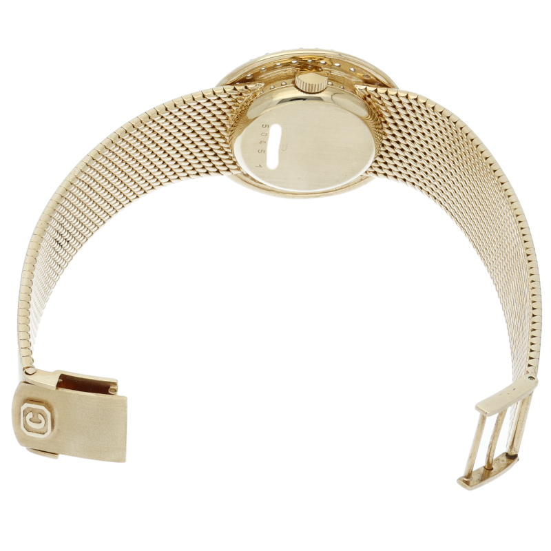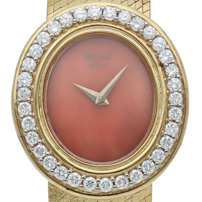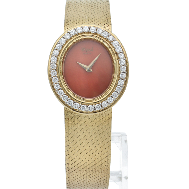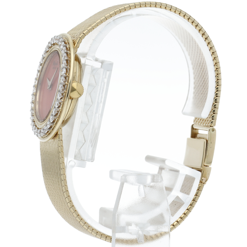1970年頃のコーラルダイヤルのイエローゴールドと、ダイヤモンドセットのブレスレットウォッチです。