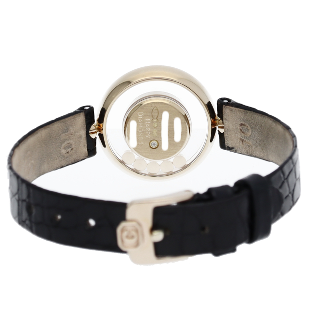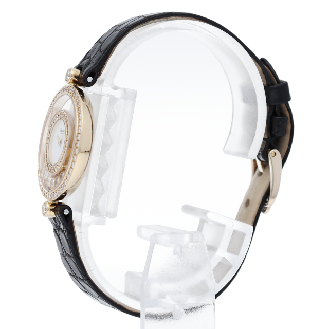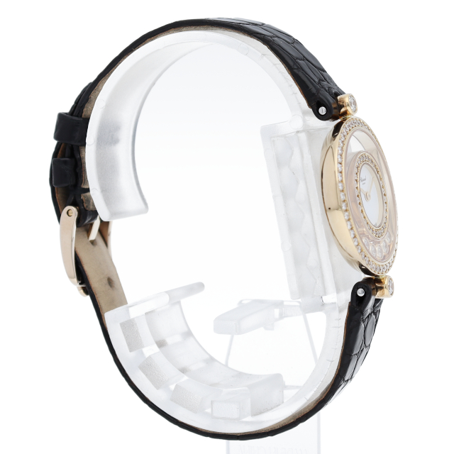 ショパールのレディースといえば、一番最初にハッピーダイヤモンドが思い浮かぶというくらい代表的なモデルです。サイズが小さく、ダイアルの中を自由に動き回るダイヤモンドはまさにフェミニンの象徴です。細部まで作り込まれているエレガントなモデルです。