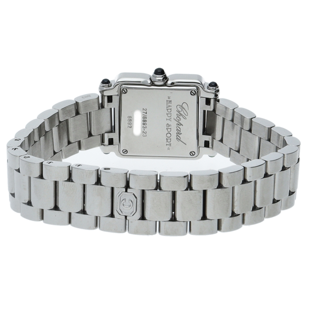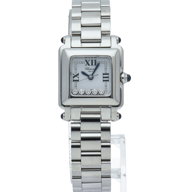 女性の憧れの人気ブランド「ショパール」。文字盤上にはダイヤモンドがエレガントに揺れ動く上品でキュートな人気モデル。ガラスに5個のムーブダイヤ入。ラグ・リューズはサファイア仕様です。