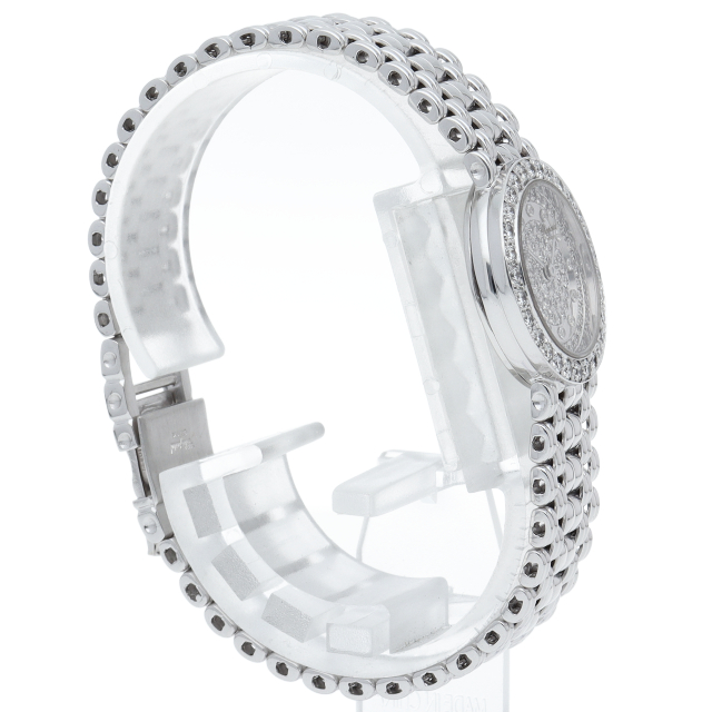 女性の憧れの人気ブランド「ショパール」。こちらはホワイトゴールドをベースに全面にダイヤモンドを贅沢に使用した上品で豪華な1本です。