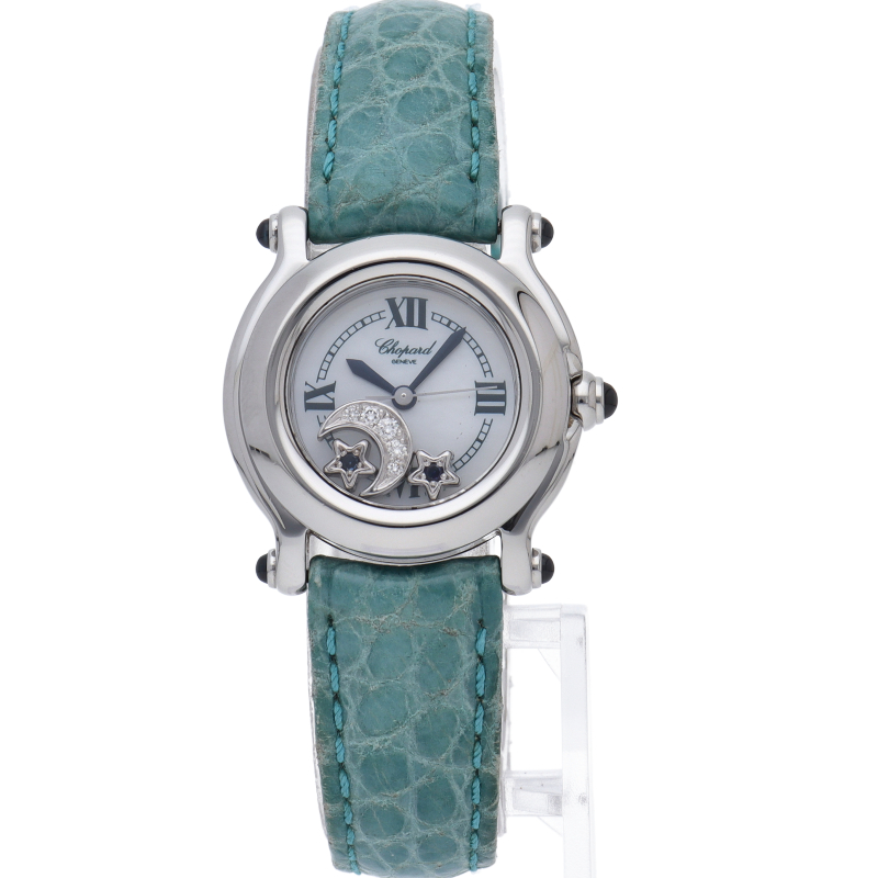女性の憧れの人気ブランド「ショパール」。文字盤の上をクルクルと動き回るダイヤが特徴的なハッピースポーツ。上品ながらも遊び心を取り入れた人気モデル。