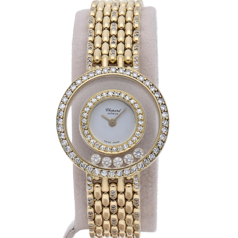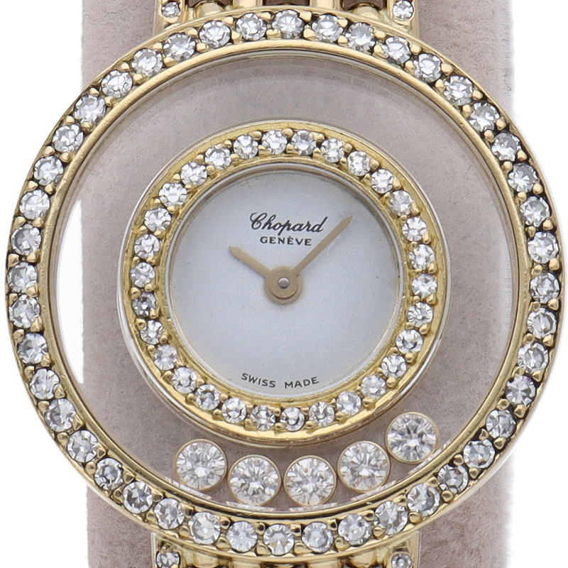 女性の憧れの人気ブランド「ショパール」。文字盤上にはダイヤモンドがエレガントに揺れ動く上品でキュートな人気モデル。