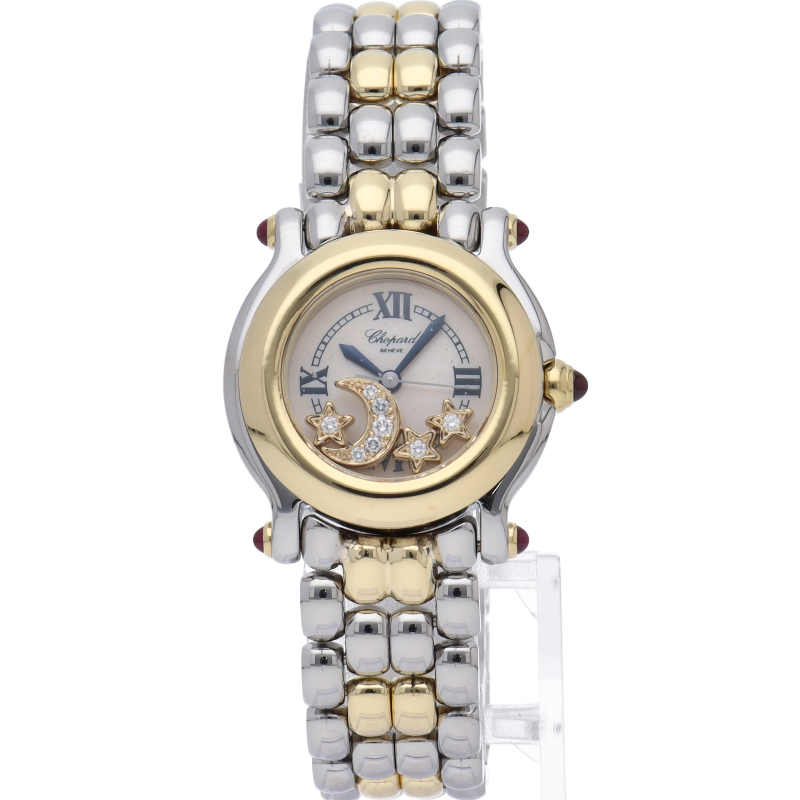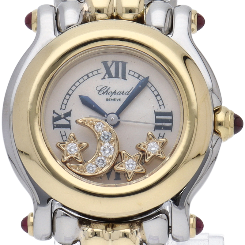 女性の憧れの人気ブランド「ショパール」。文字盤の上をクルクルと動き回るダイヤが特徴的なハッピースポーツ。上品ながらも遊び心を取り入れた人気モデル。