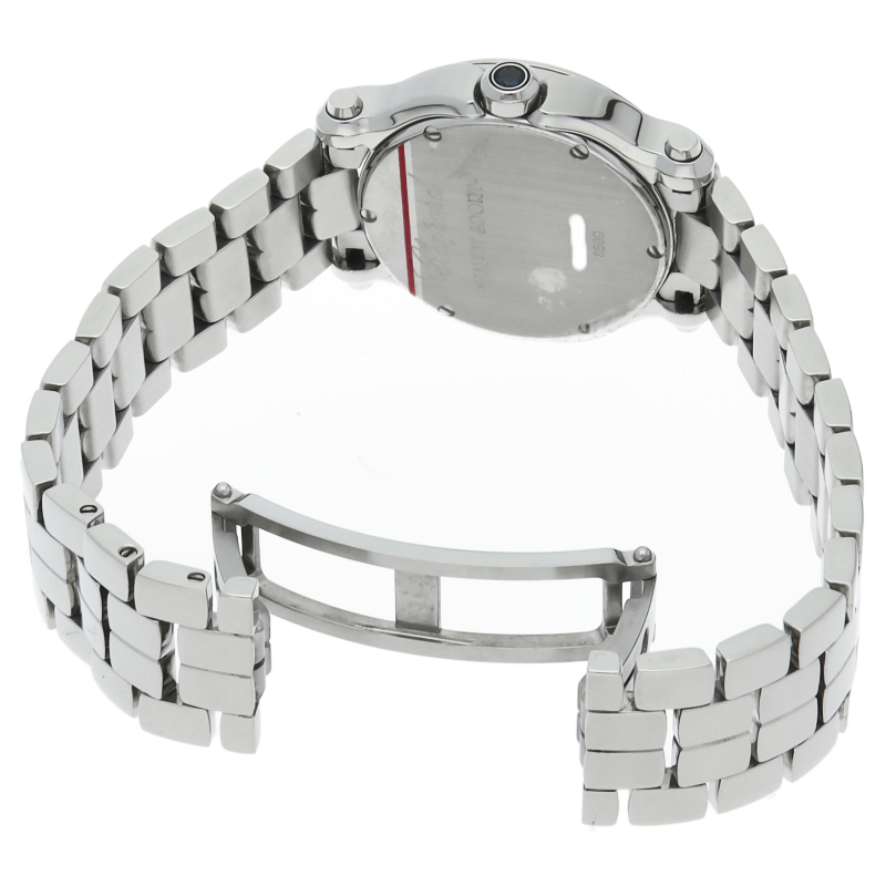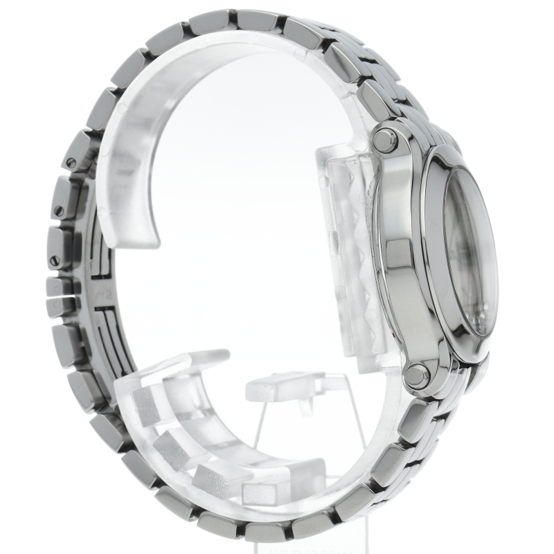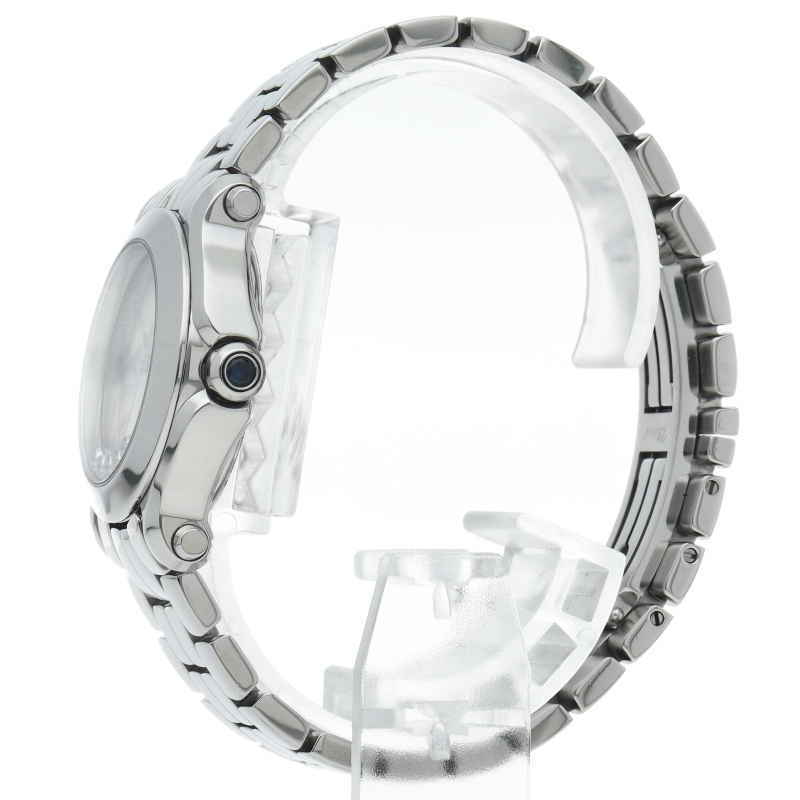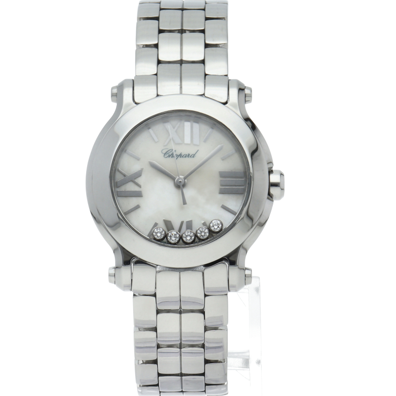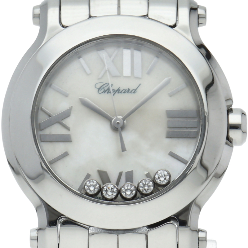 女性の憧れの人気ブランド「ショパール」。文字盤の上をクルクルと動き回る5つのダイヤが特徴的なハッピースポーツ。文字盤にはシェルを、リューズ位置のカボションにはサファイヤを使用しており、豪華さと上品さを兼ね備えた贅沢な逸品に仕上がっています。