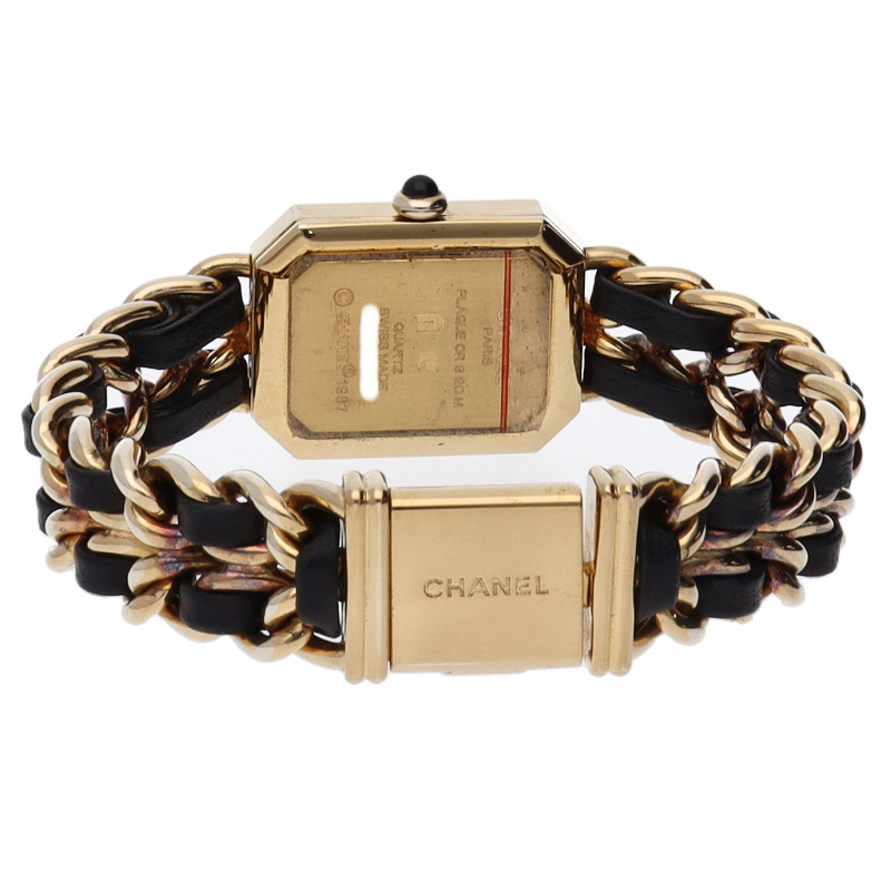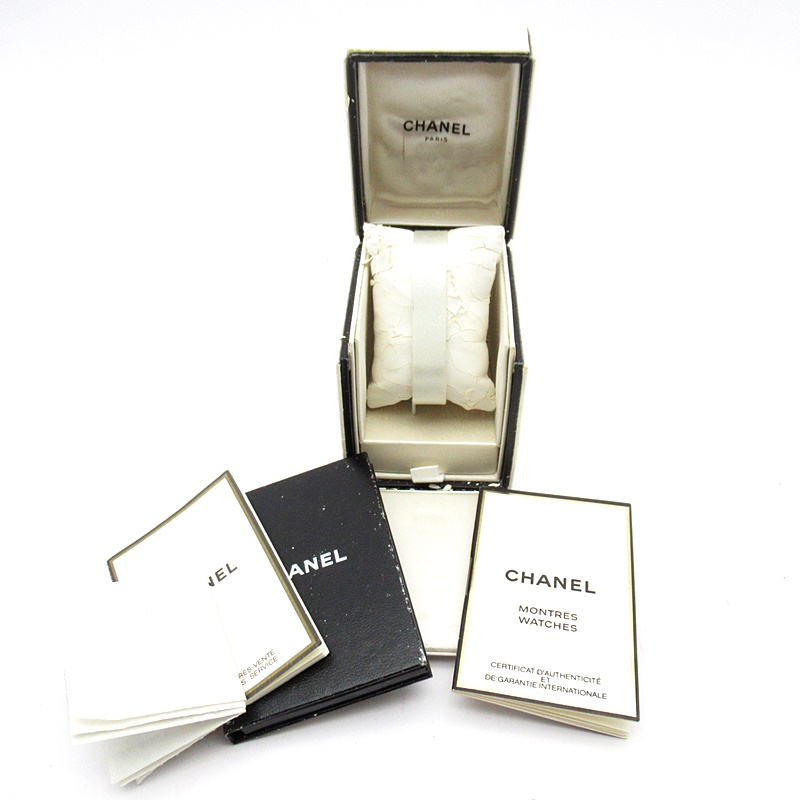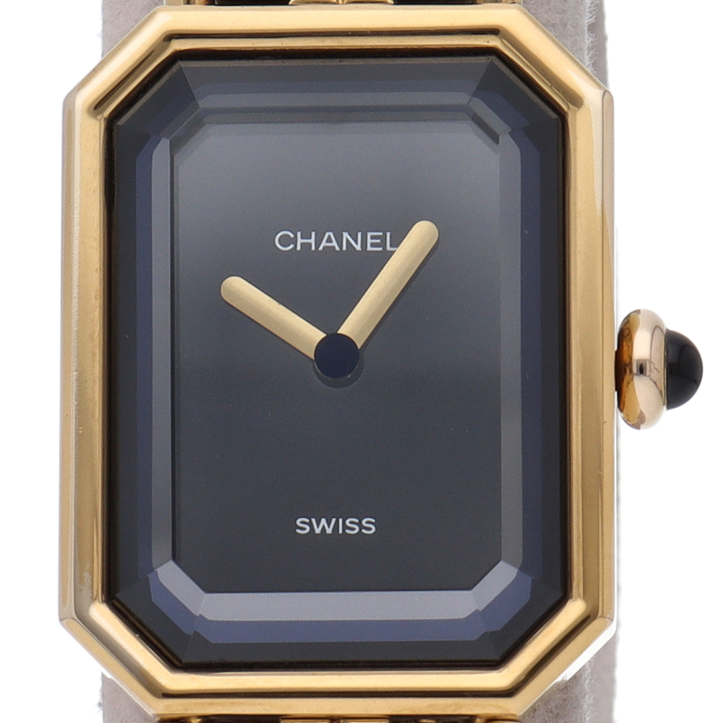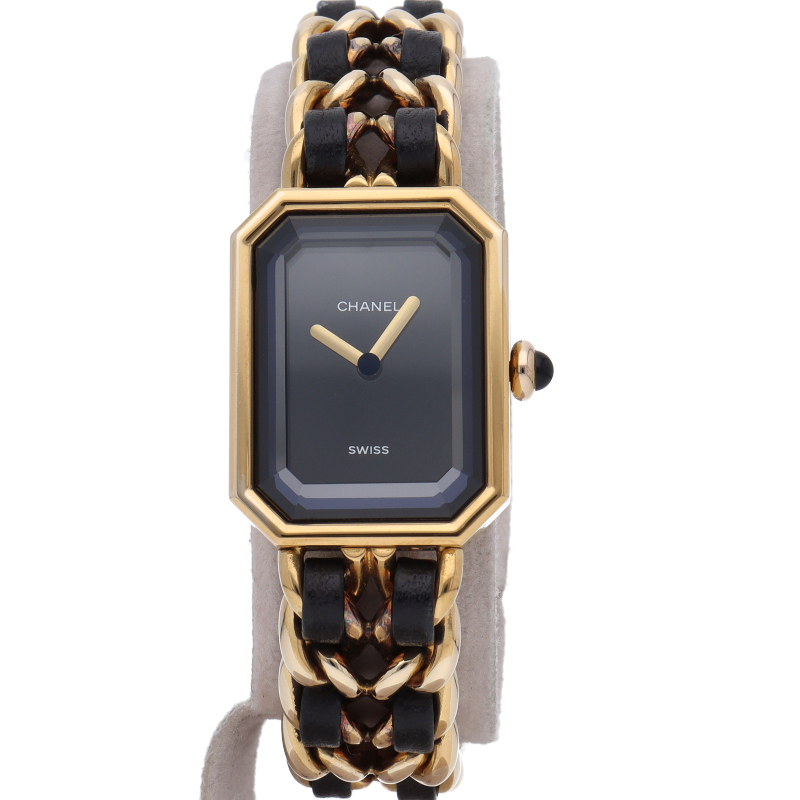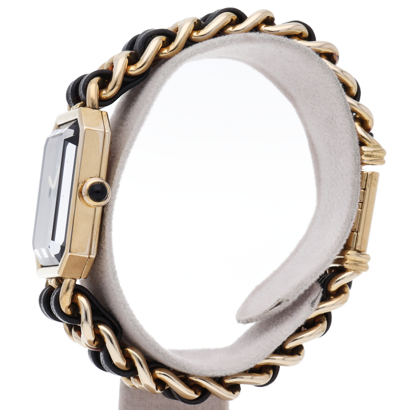 気品溢れるシャネルウォッチの定番モデルでプルミエールです。レザーがブレスに編みこまれたデザインが特徴的な1本。