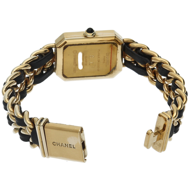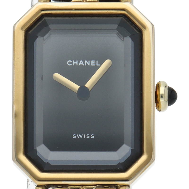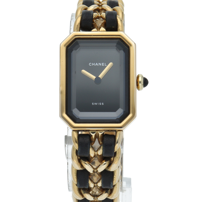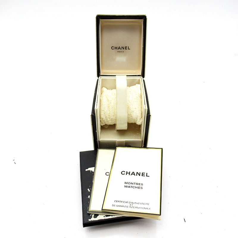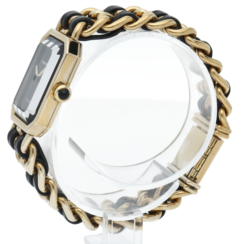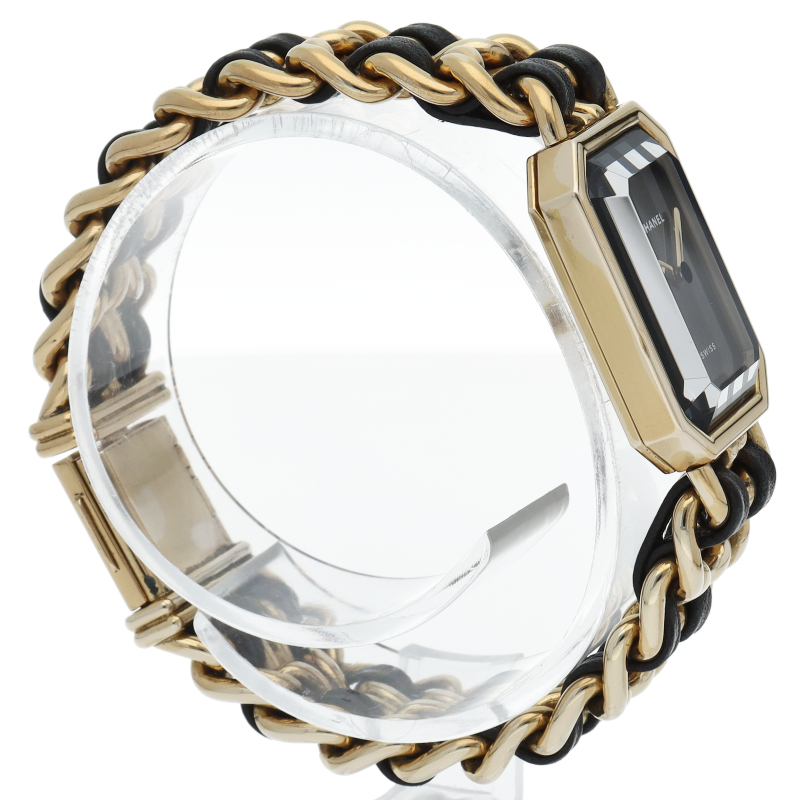 気品溢れるシャネルウォッチの定番モデルでプルミエールです。レザーがブレスに編みこまれたデザインが特徴的な1本。