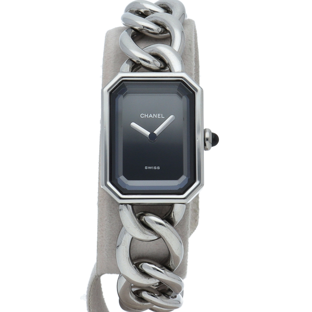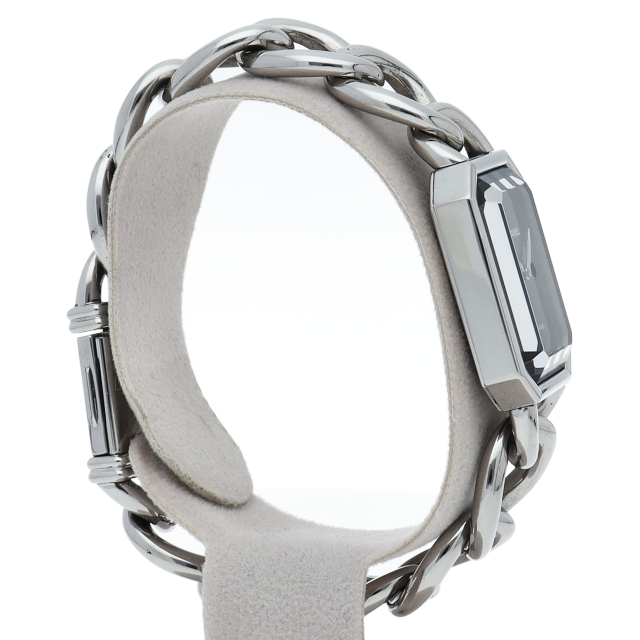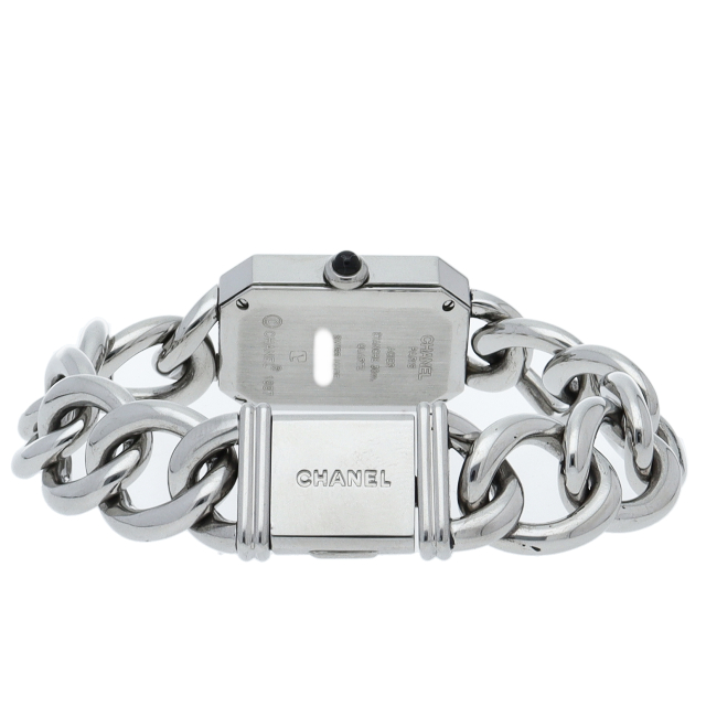 気品溢れるシャネルウォッチの定番モデルでプルミエールです。ステンレスチェーン型のブレスがオシャレで気品溢れる1本です。