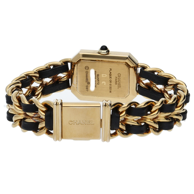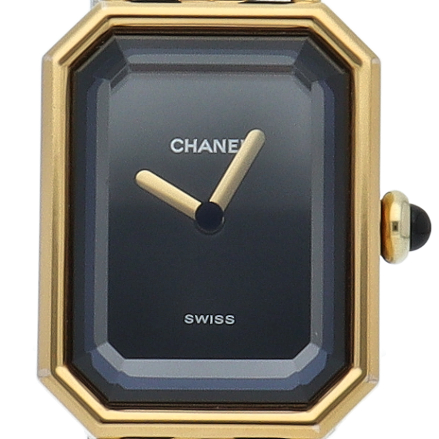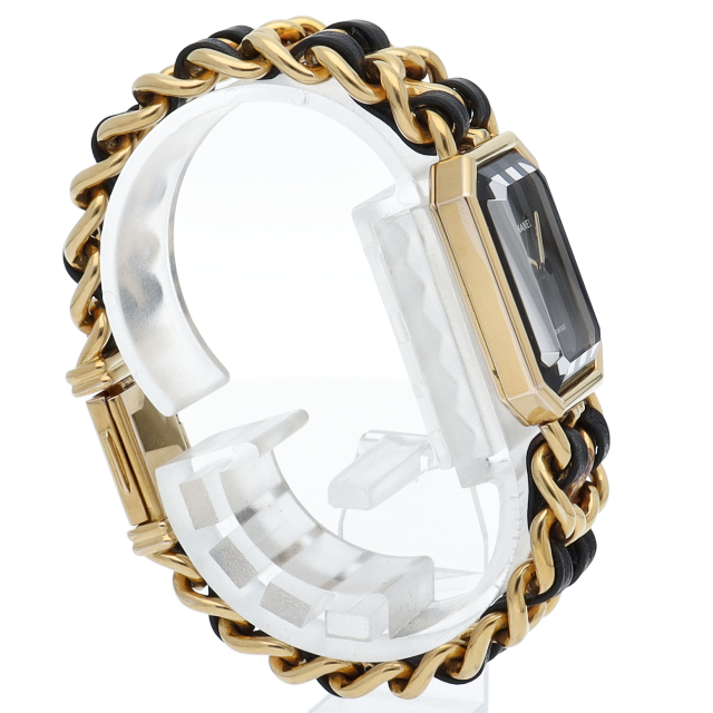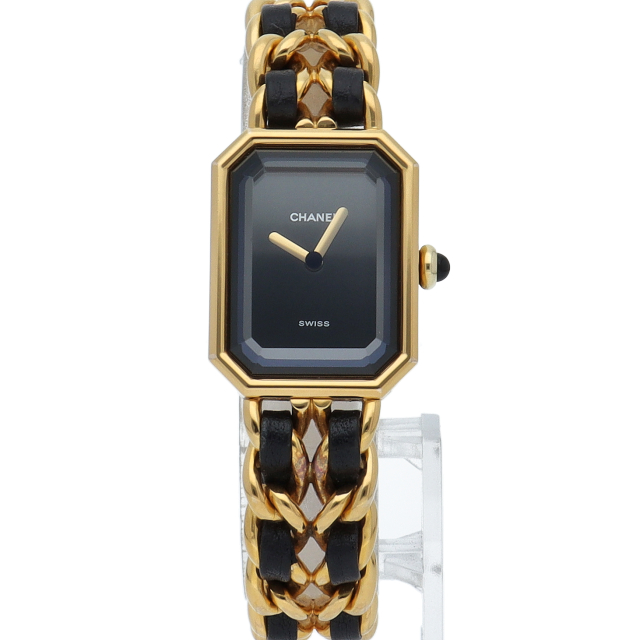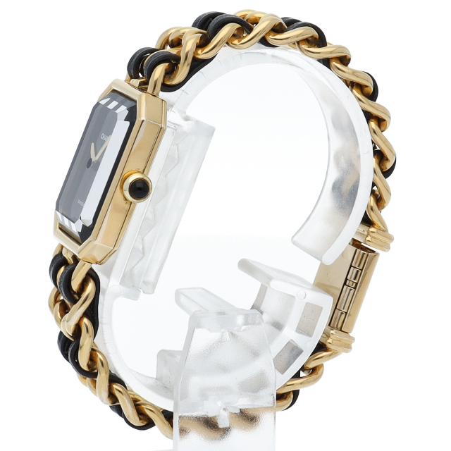 気品溢れるシャネルウォッチの定番モデルでプルミエールです。レザーがブレスに編みこまれたデザインが特徴的な1本。