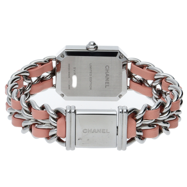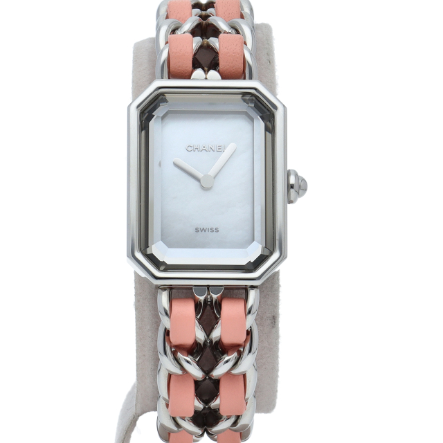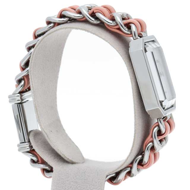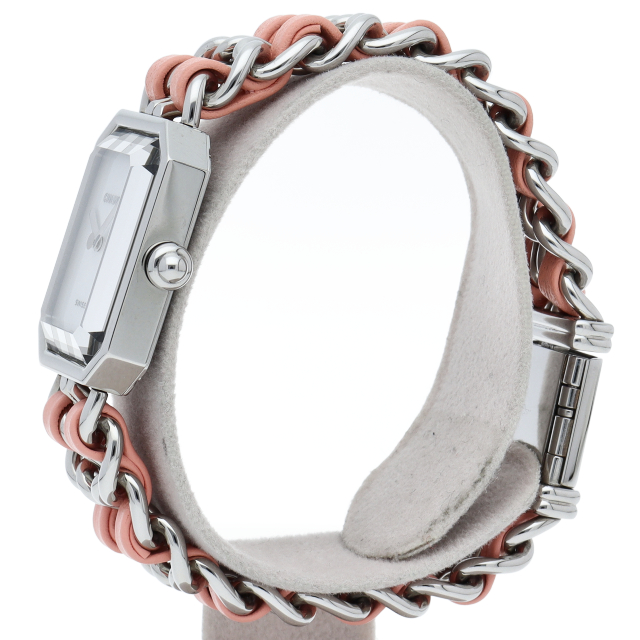 気品溢れるシャネルウォッチの定番モデルでプルミエールです。ステンレスチェーン型のブレスがオシャレで気品溢れる1本です。