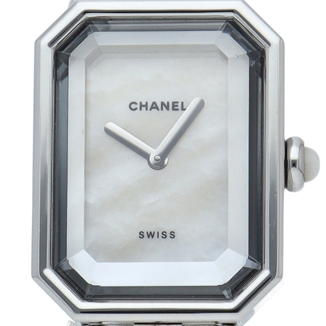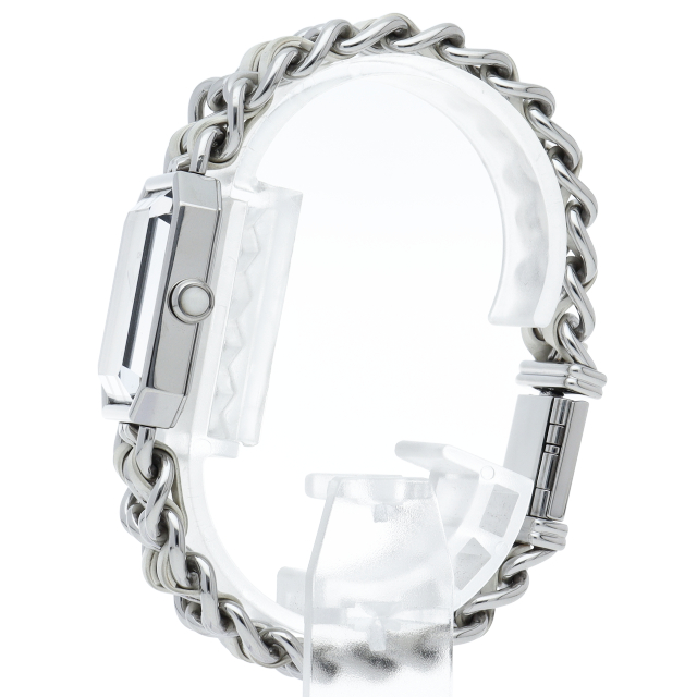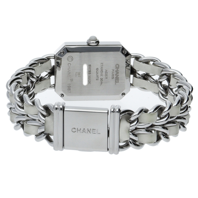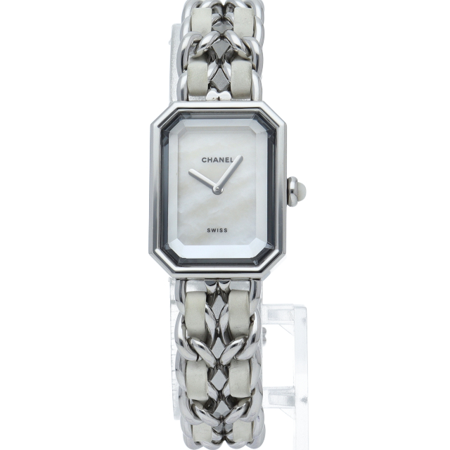 気品溢れるシャネルウォッチの定番モデル「プルミエール」。ホワイトラバーがブレスに編みこまれた高級感溢れる1本。