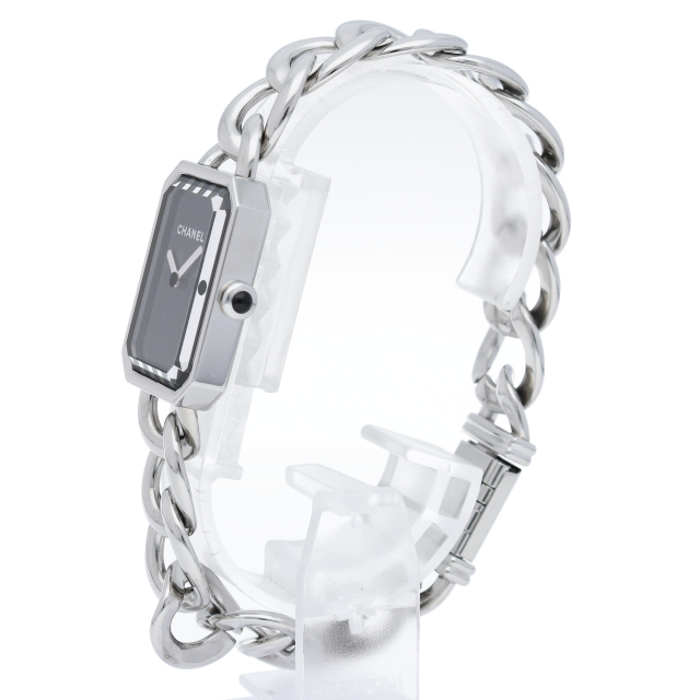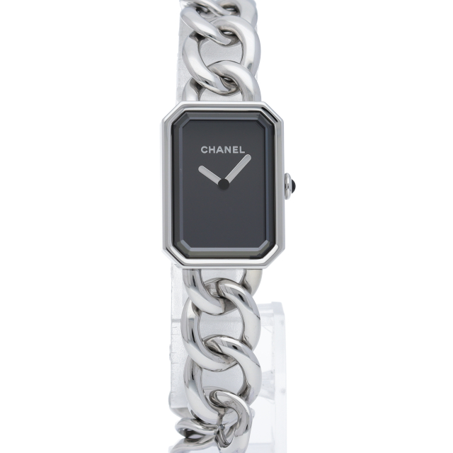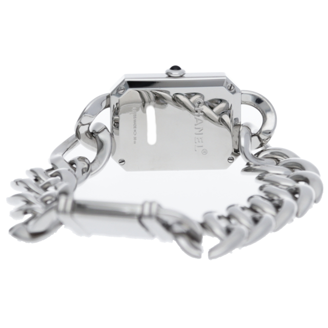 気品溢れるシャネルウォッチの定番モデルでプルミエールです。ステンレスチェーン型のブレスがオシャレで気品溢れる1本です。