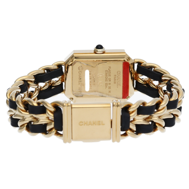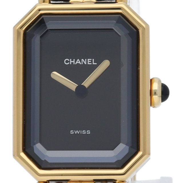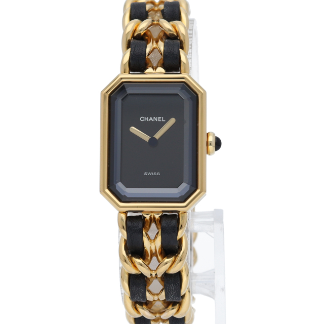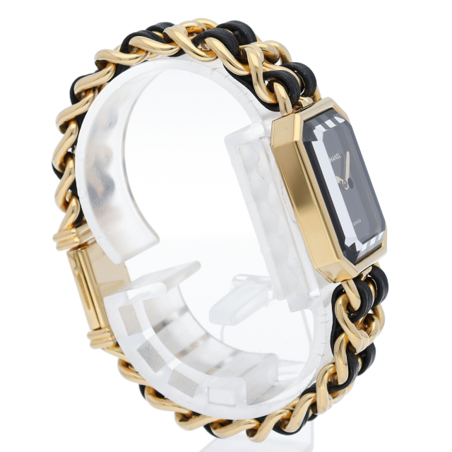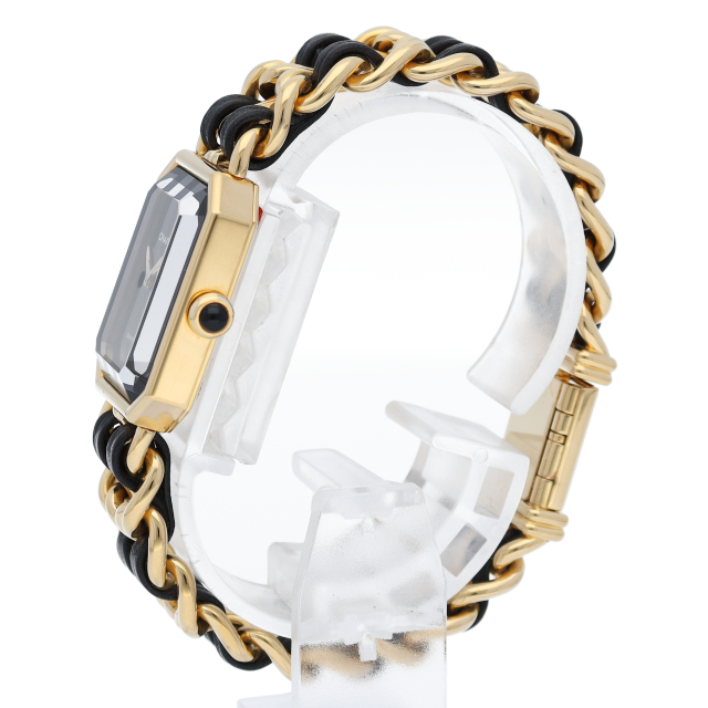 気品溢れるシャネルウォッチの定番モデルでプルミエールです。レザーがブレスに編みこまれたデザインが特徴的な1本。