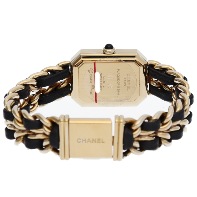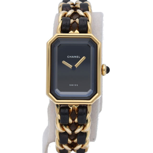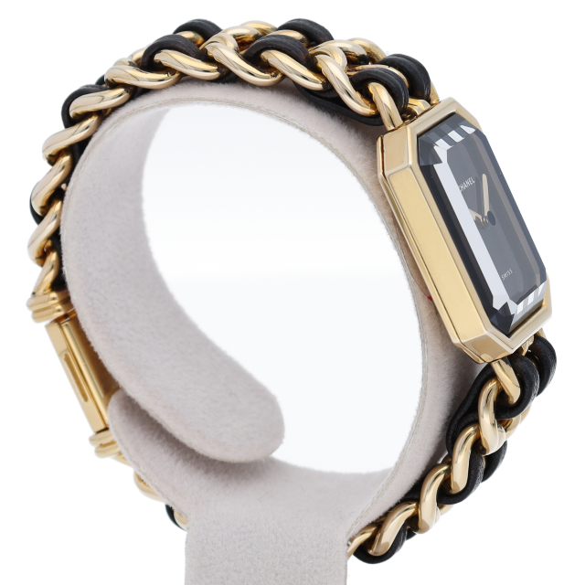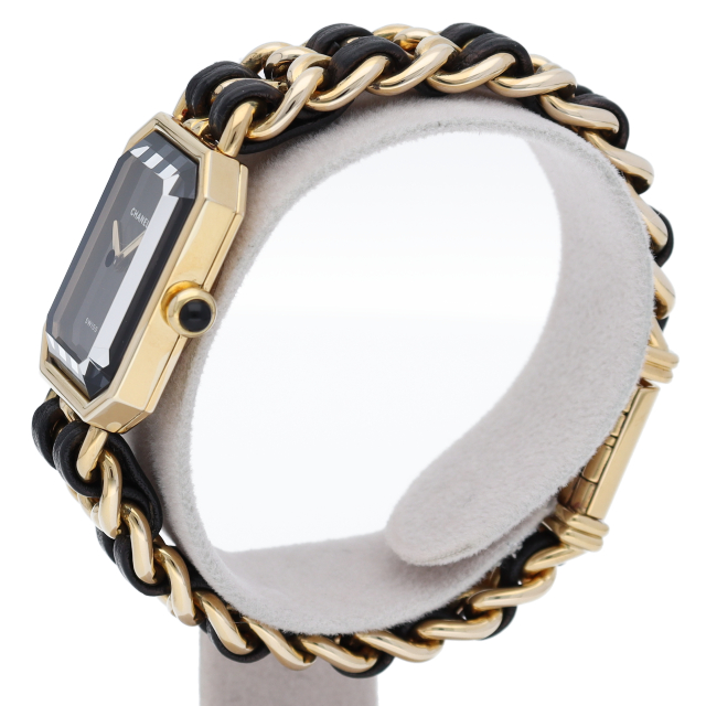 気品溢れるシャネルウォッチの定番モデルでプルミエールです。レザーがブレスに編みこまれたデザインが特徴的な1本。