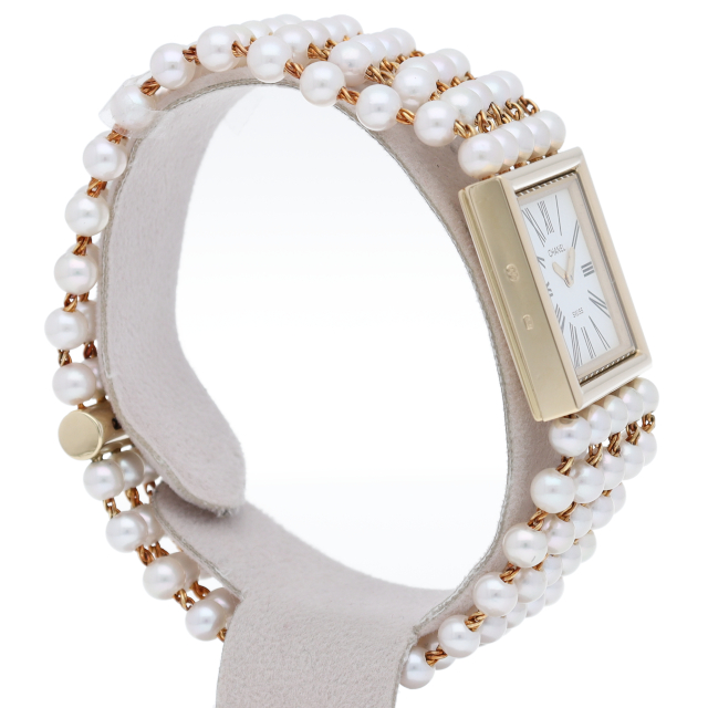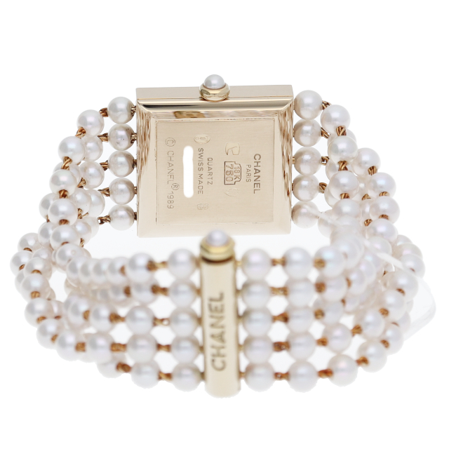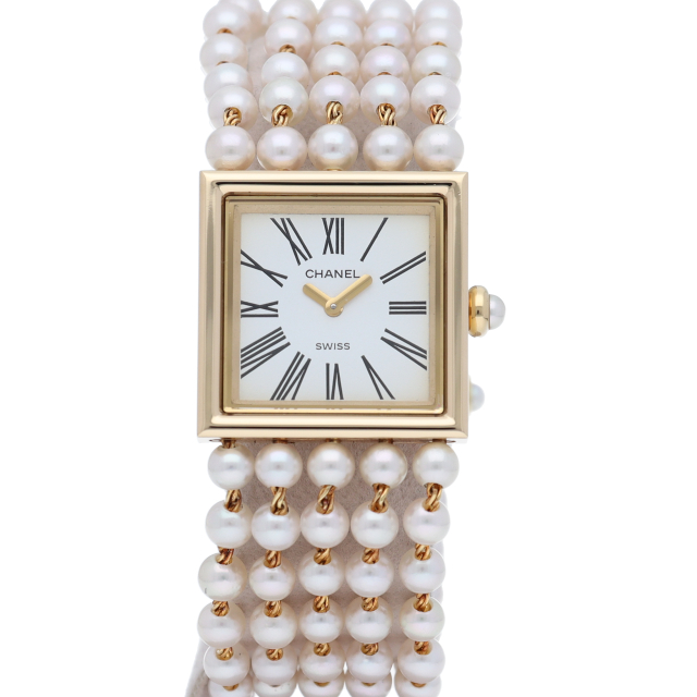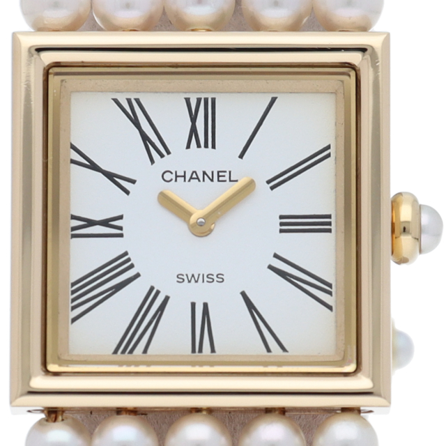 シャネルのエレガントなデザインが人気の「マドモアゼル」。シンプルなインデックスにブレスレットにはパールが施された豪華な1本。