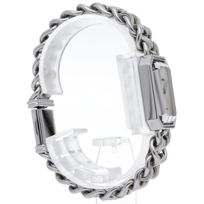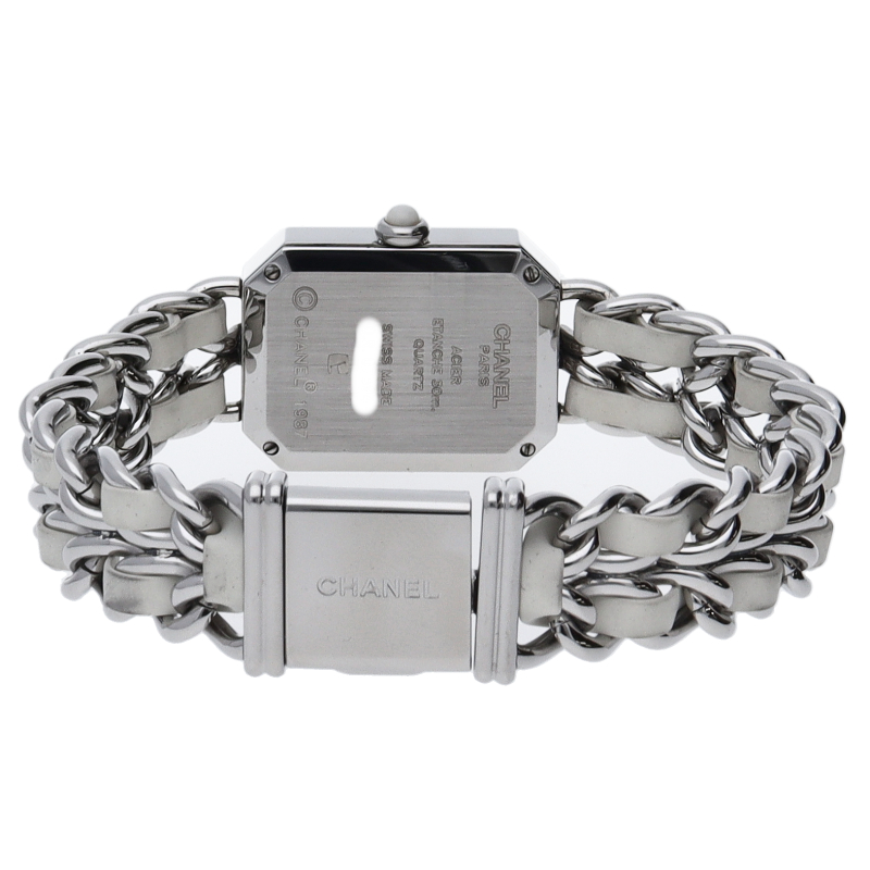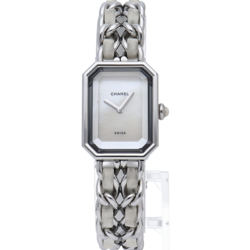 気品溢れるシャネルウォッチの定番モデル「プルミエール」。ホワイトラバーがブレスに編みこまれた高級感溢れる1本。