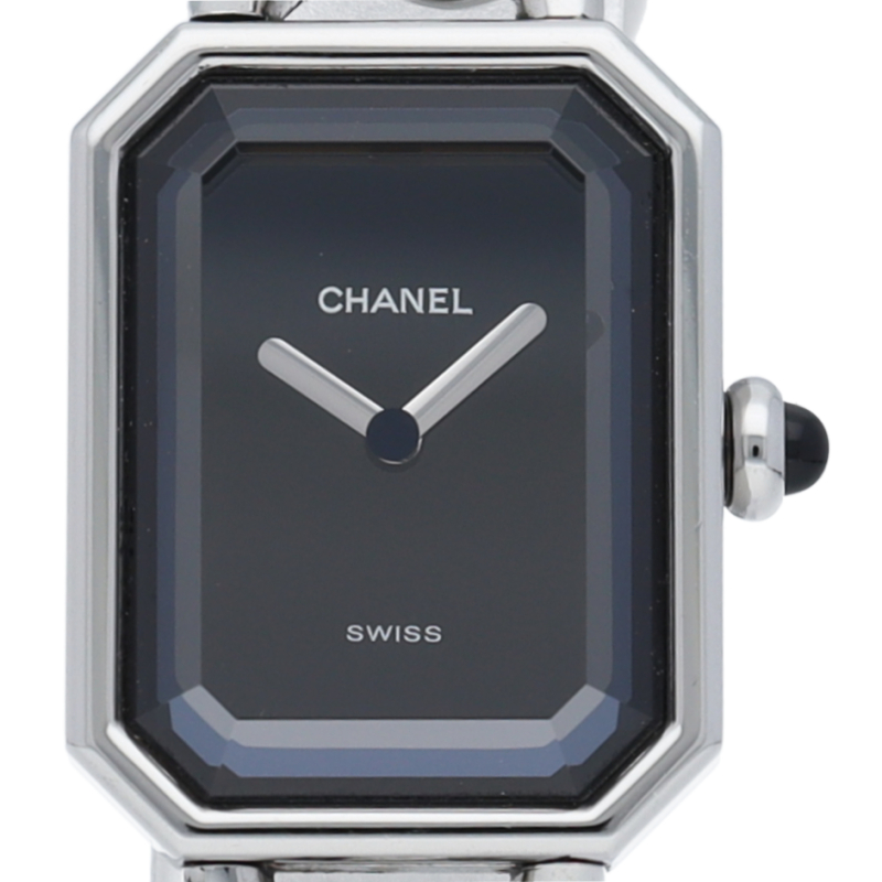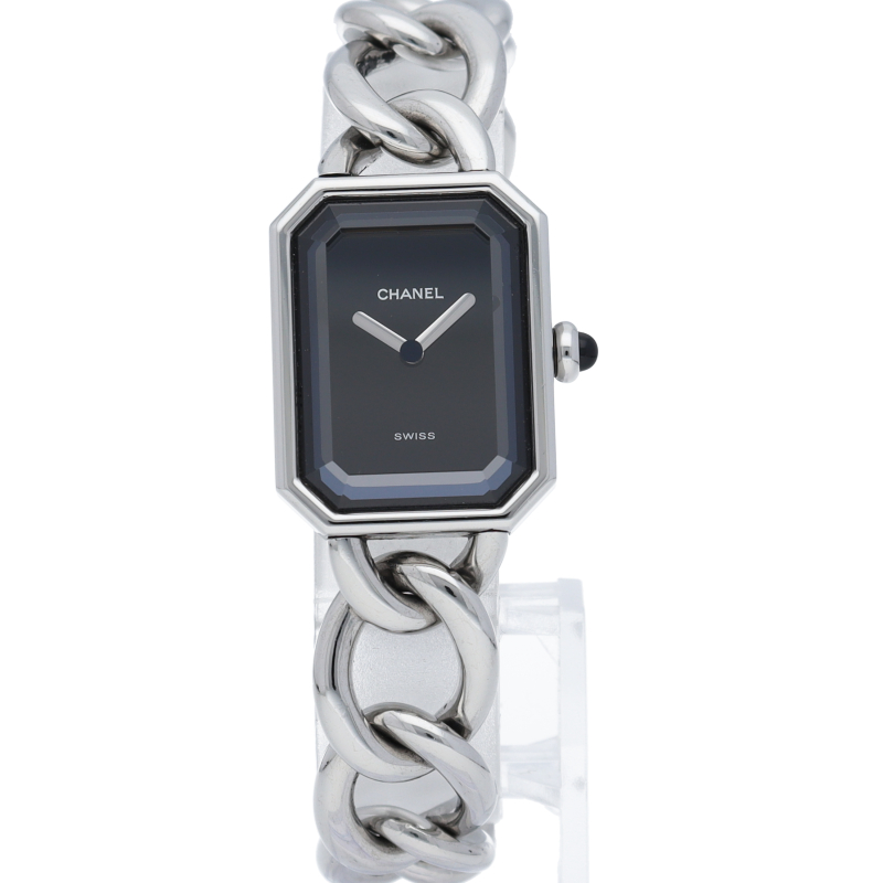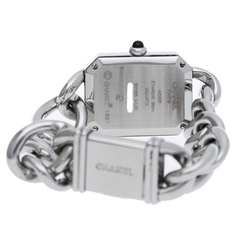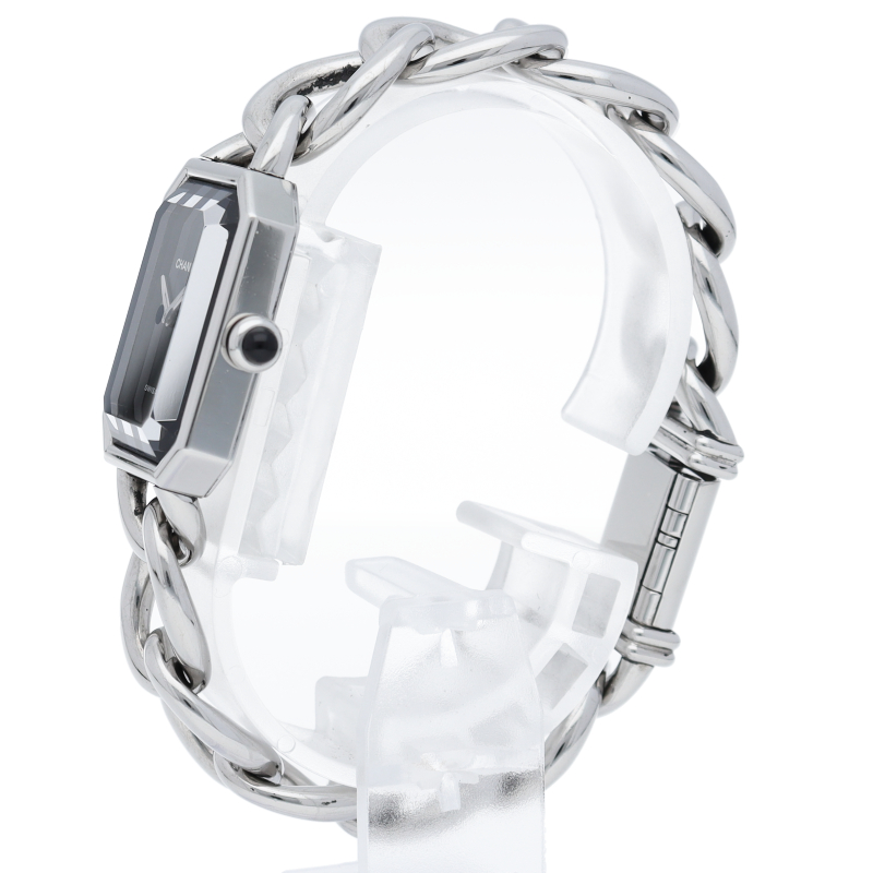 気品溢れるシャネルウォッチの定番モデルでプルミエールです。ステンレスチェーン型のブレスがオシャレで気品溢れる1本です。