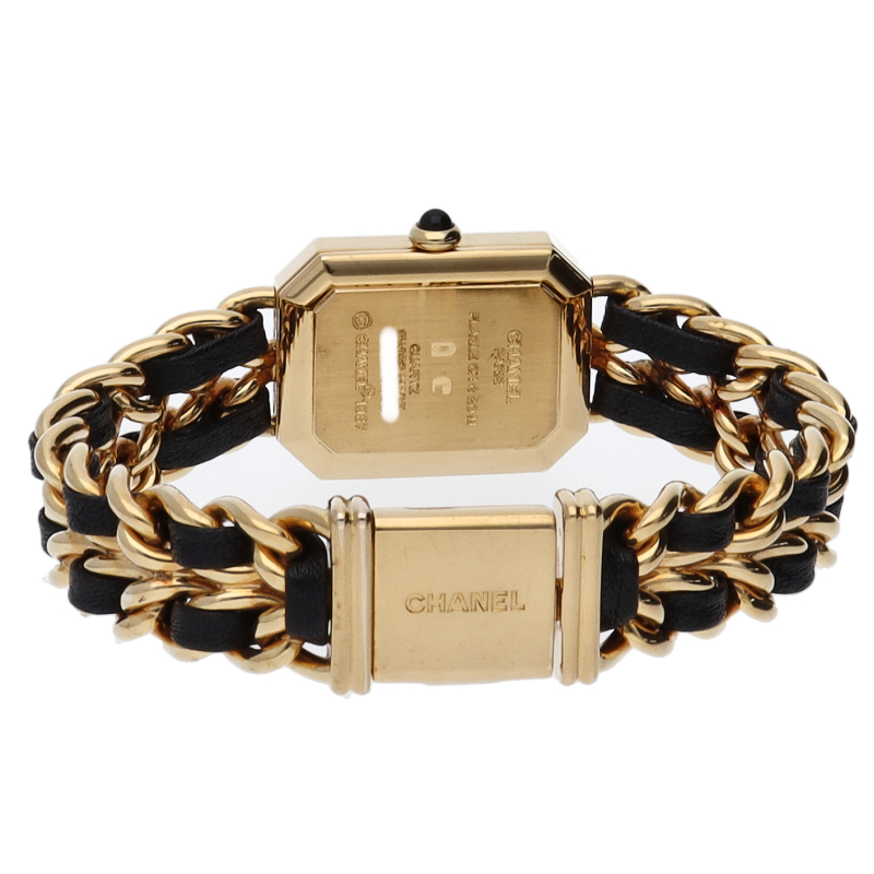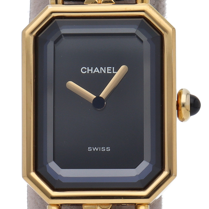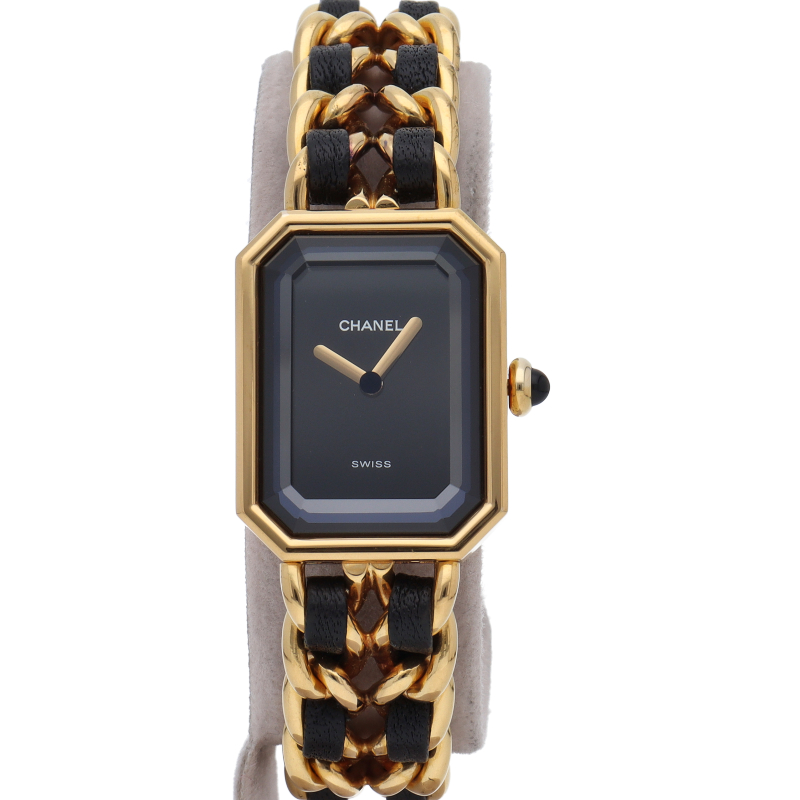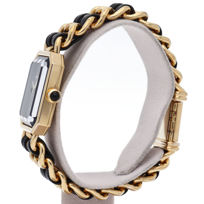 気品溢れるシャネルウォッチの定番モデルでプルミエールです。レザーがブレスに編みこまれたデザインが特徴的な1本。