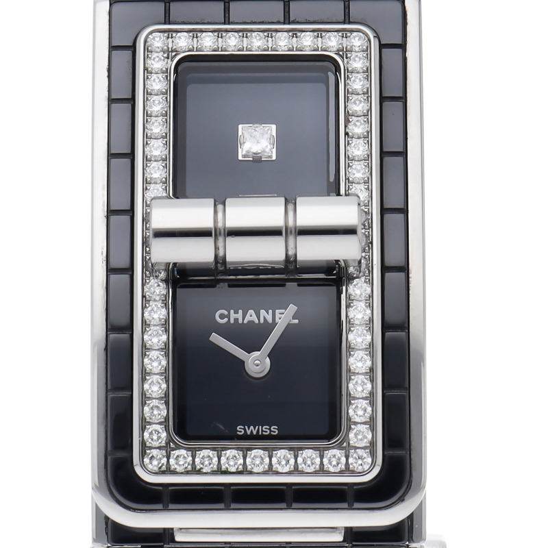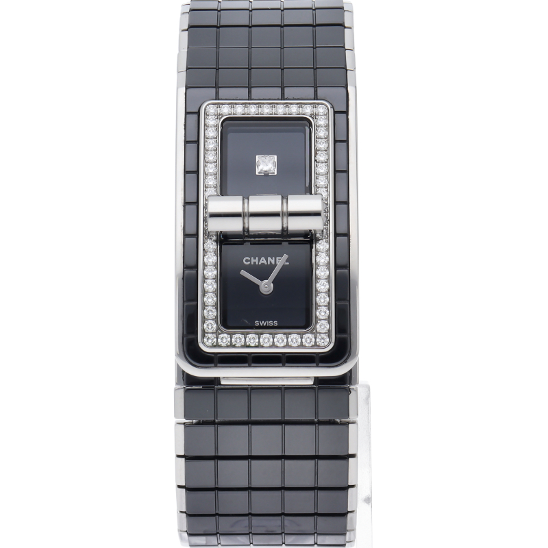 2018年発表のセラミックを使用したモデルです。 クラスプはシャネルのハンドバックで採用されたマドモアゼルクラスプ。 ベゼルにダイヤモンドと文字盤にも1ポイントのダイヤモンドが施されております。