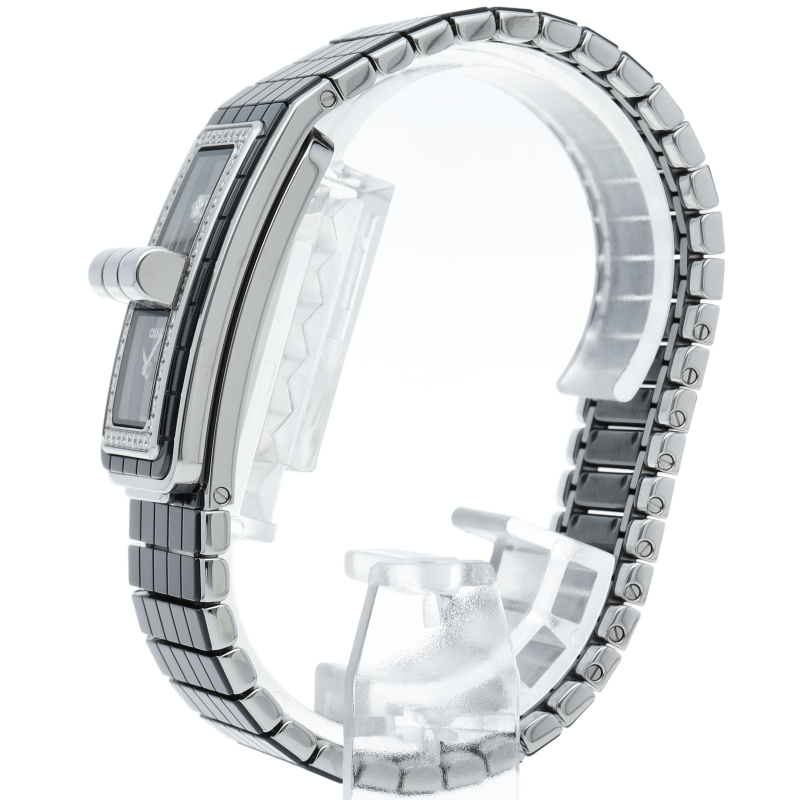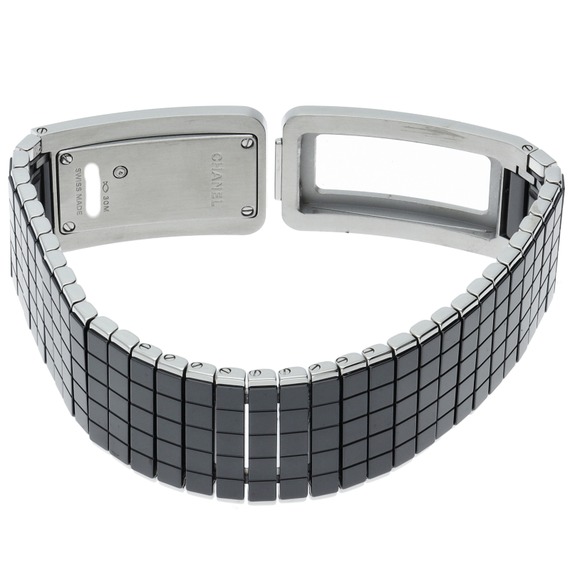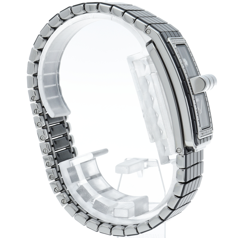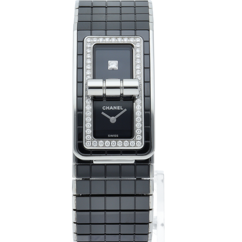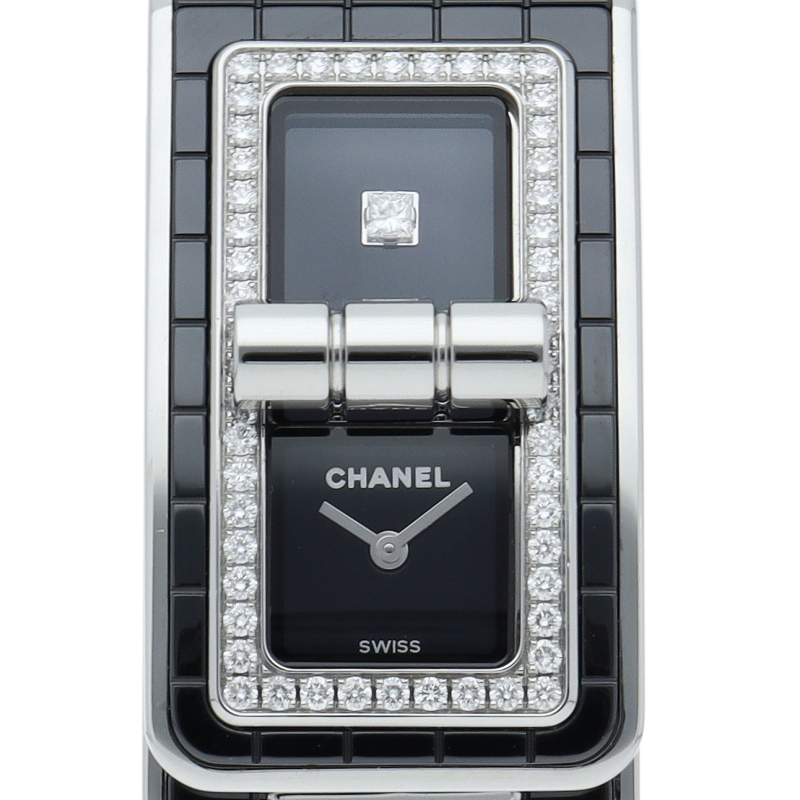 1955年以来シャネルを代表するアイコンバックの「2.55」にインスパイアされた2017年発表の「コードココ」。ブラックラッカー仕上げの文字盤には一石のプリンセスカットダイヤモンドがセッティングされています。