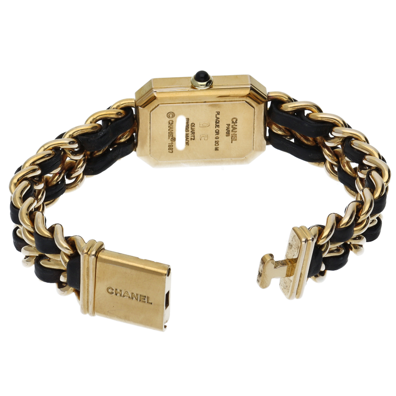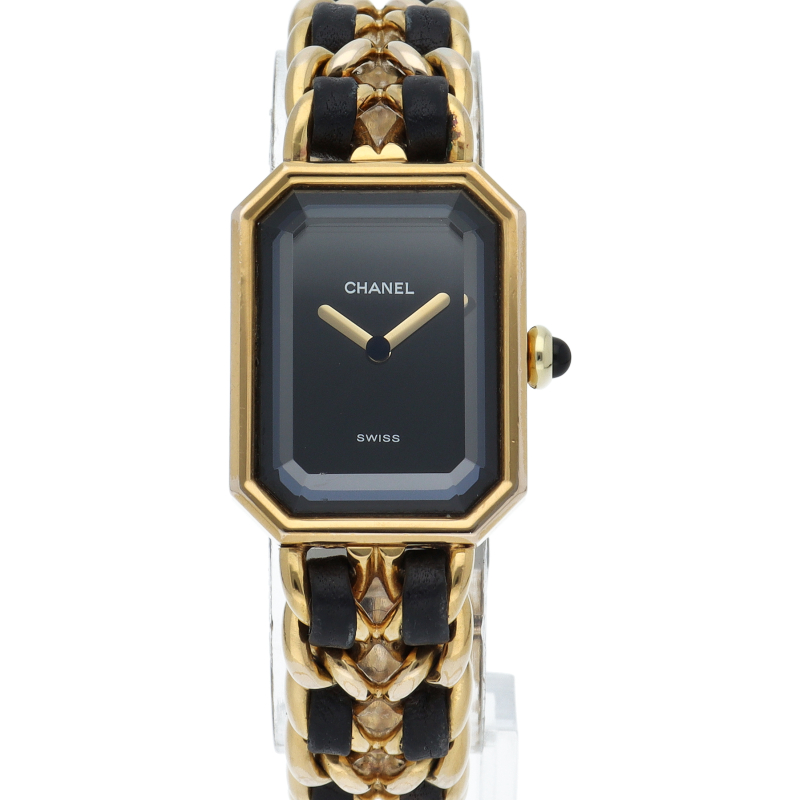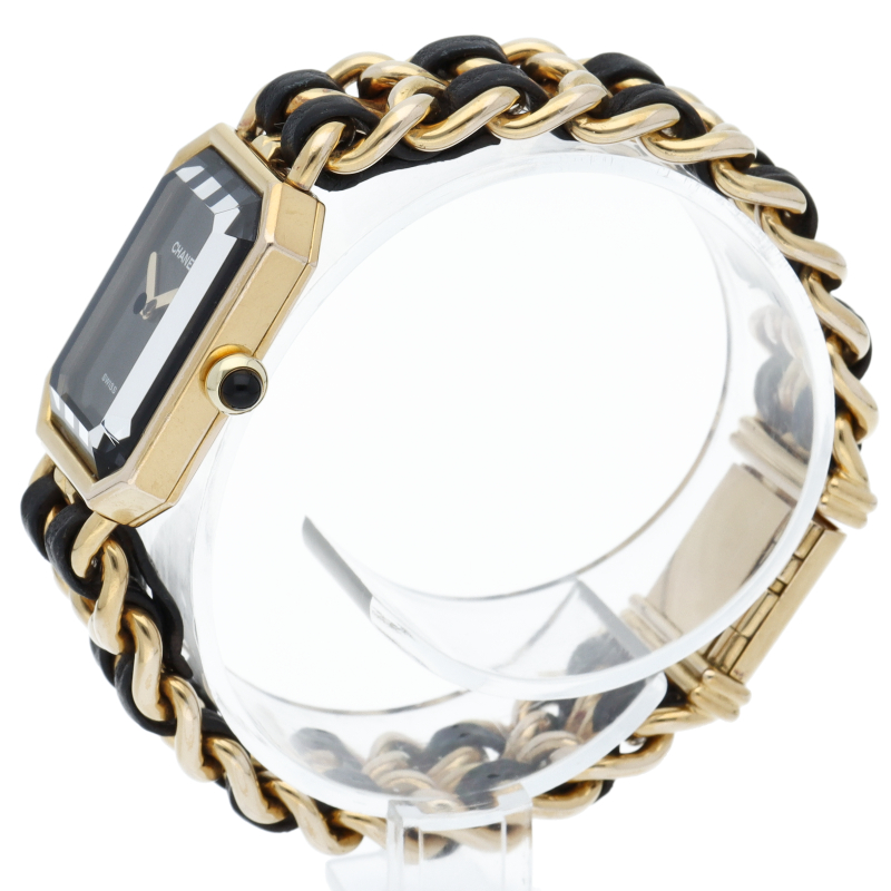 気品溢れるシャネルウォッチの定番モデルでプルミエールです。レザーがブレスに編みこまれたデザインが特徴的な1本。