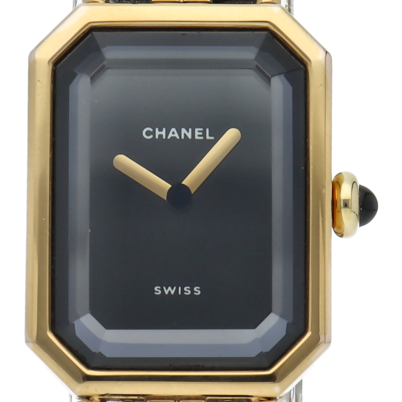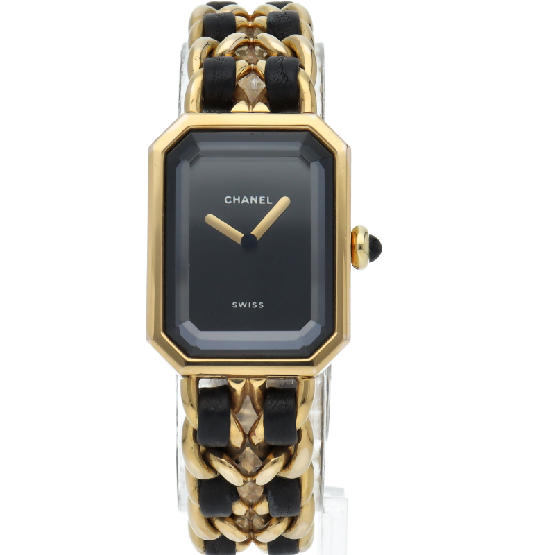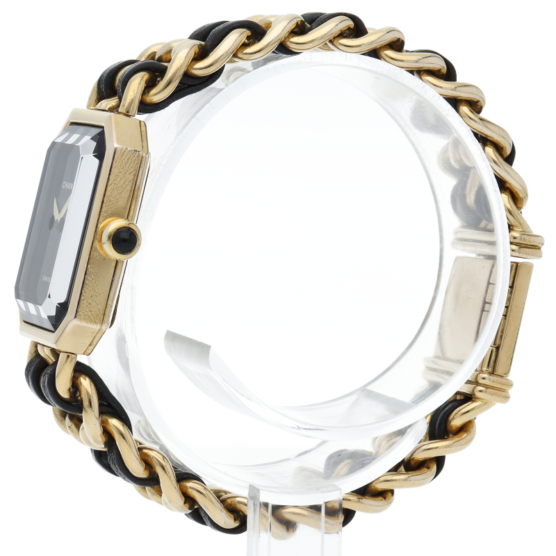 気品溢れるシャネルウォッチの定番モデルでプルミエールです。レザーがブレスに編みこまれたデザインが特徴的な1本。