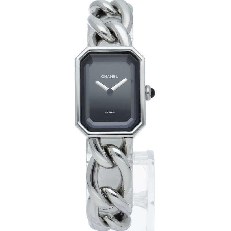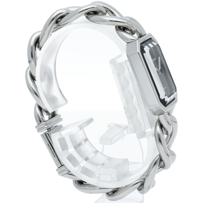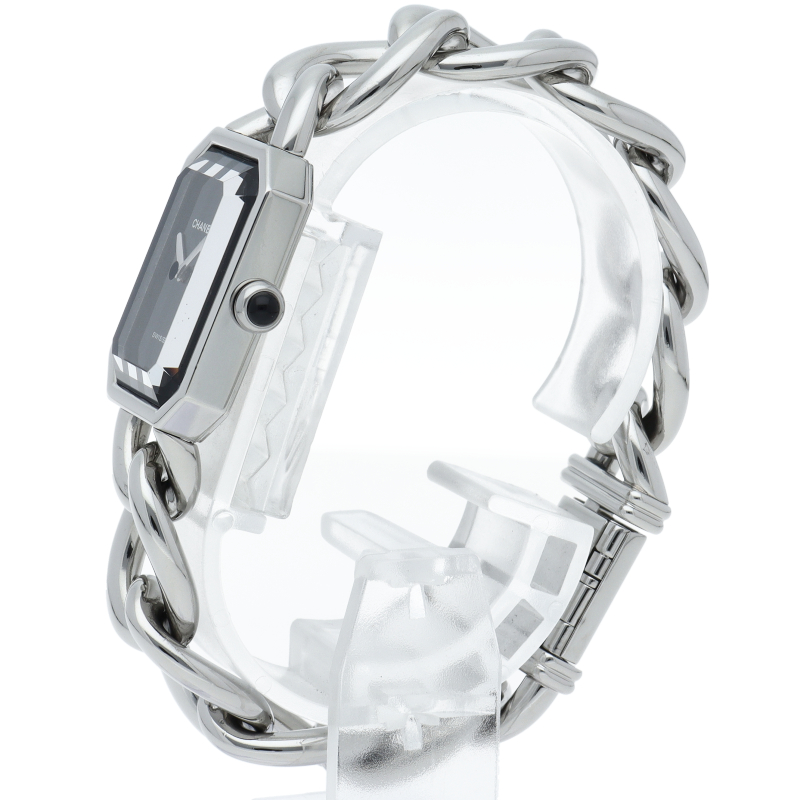シャネルウォッチの定番モデル、プルミエールです。ステンレスチェーン型のブレスがオシャレで気品溢れる1本です。
