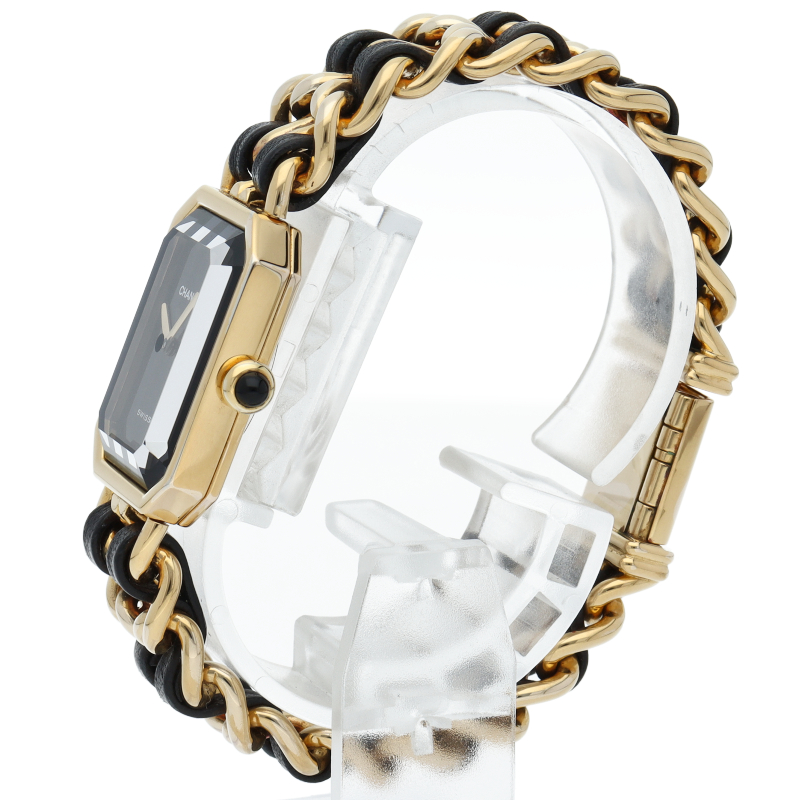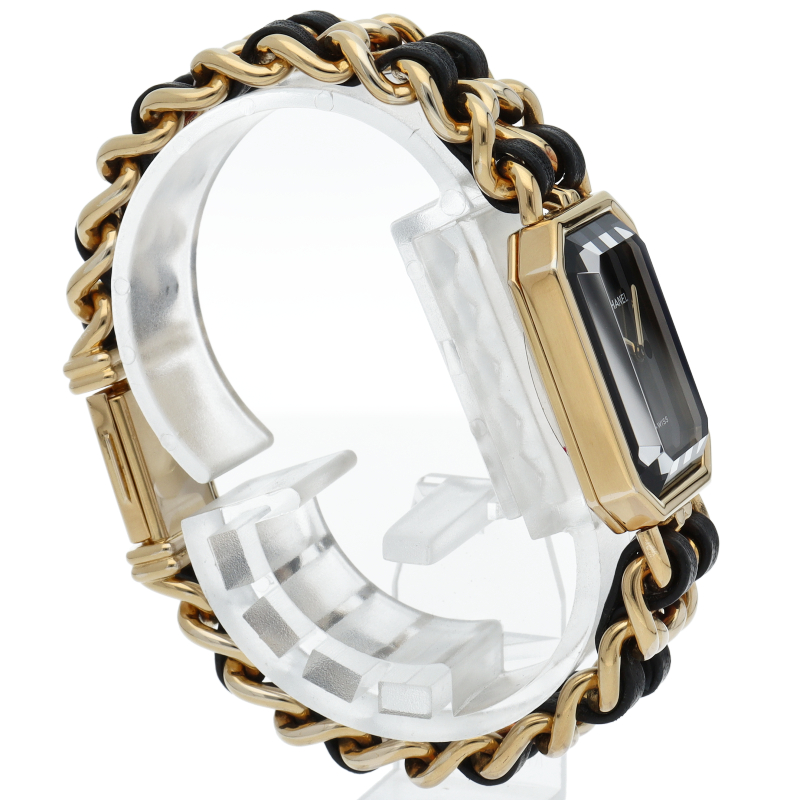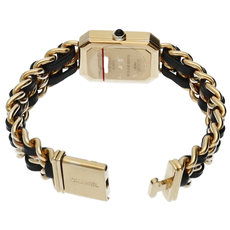 気品溢れるシャネルウォッチの定番モデルでプルミエールです。レザーがブレスに編みこまれたデザインが特徴的な1本。
