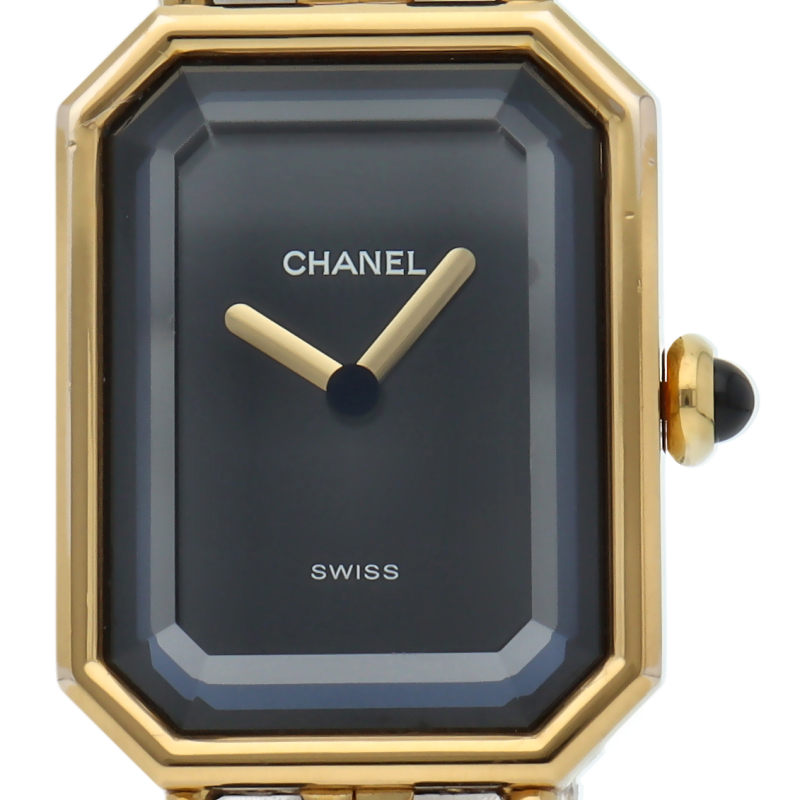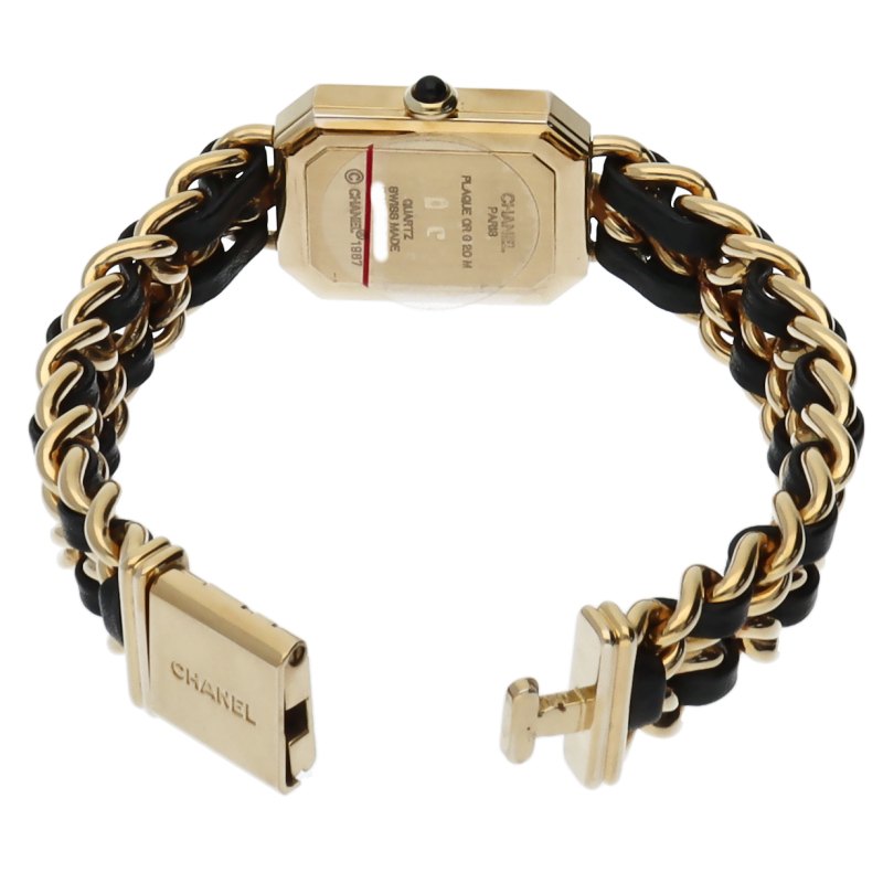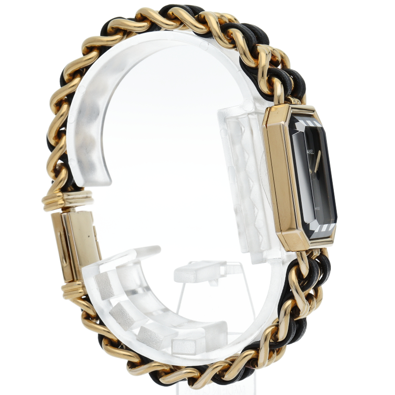気品溢れるシャネルウォッチの定番モデルでプルミエールです。レザーがブレスに編みこまれたデザインが特徴的な1本。