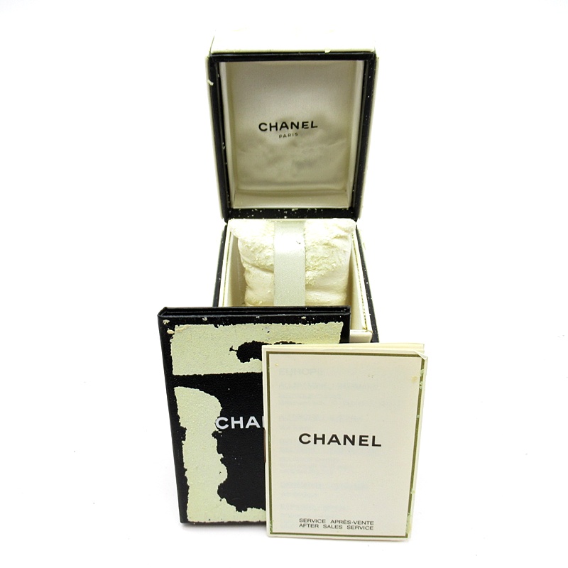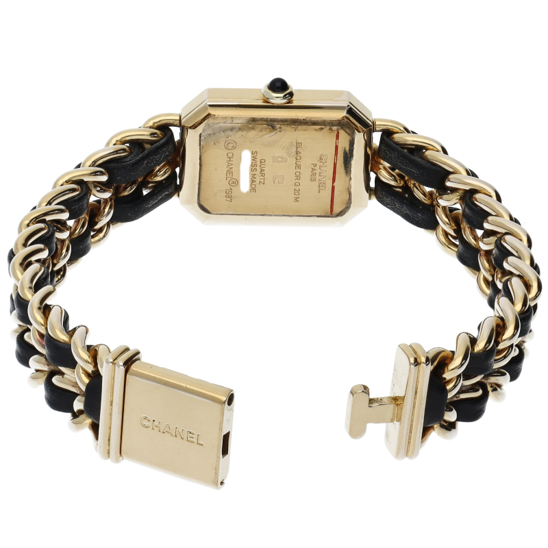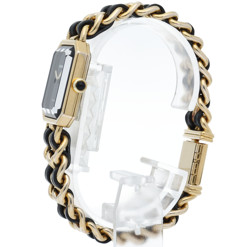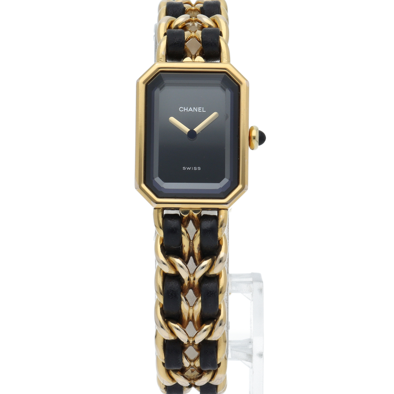 気品溢れるシャネルウォッチの定番モデルでプルミエールです。レザーがブレスに編みこまれたデザインが特徴的な1本。