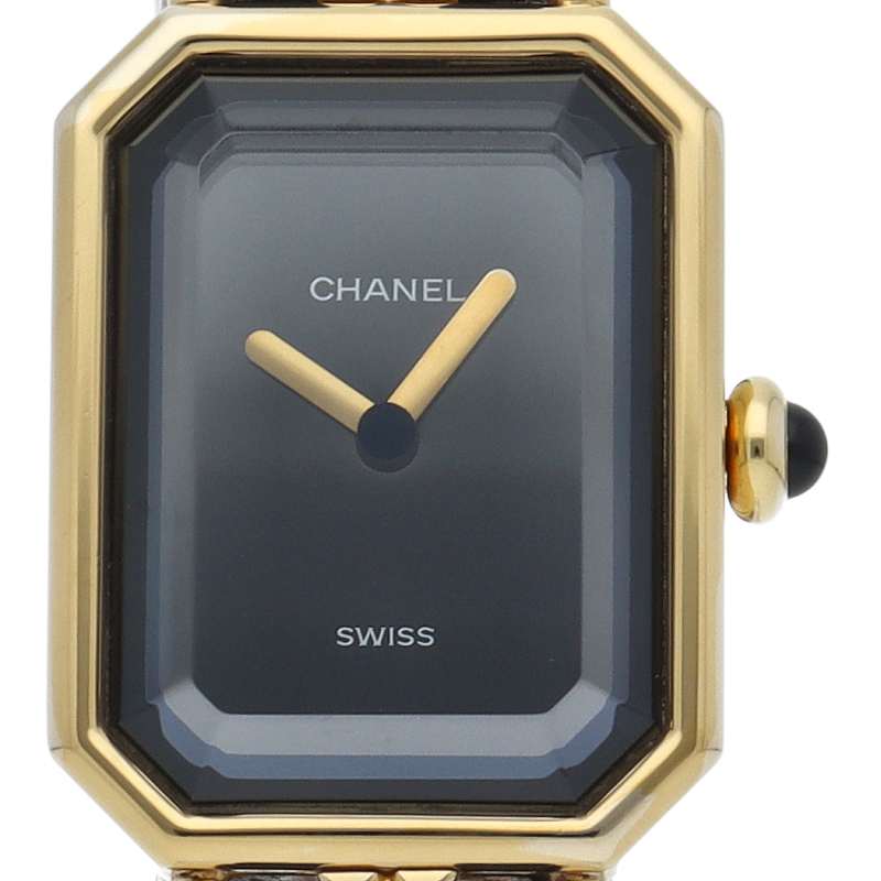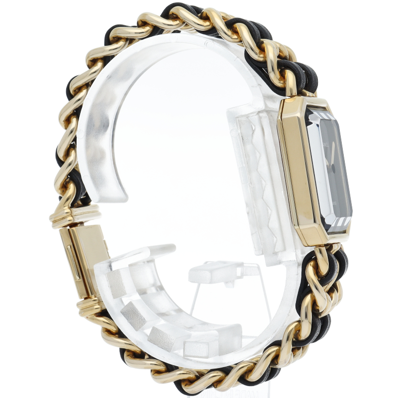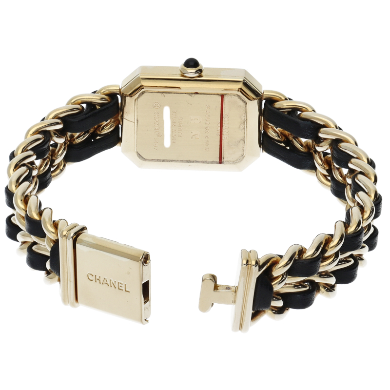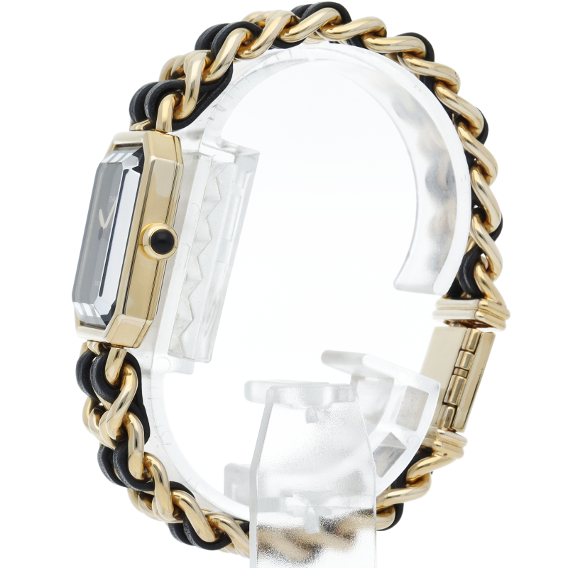気品溢れるシャネルウォッチの定番モデルでプルミエールです。レザーがブレスに編みこまれたデザインが特徴的な1本。