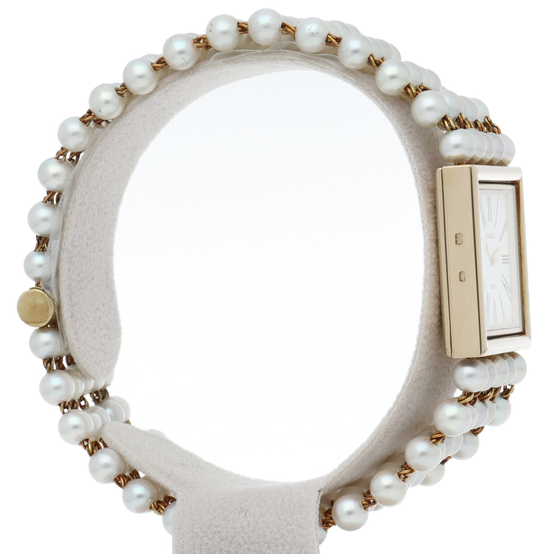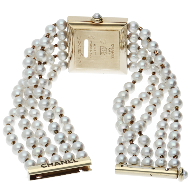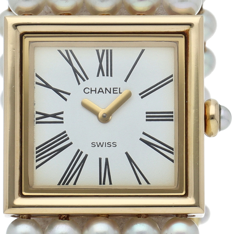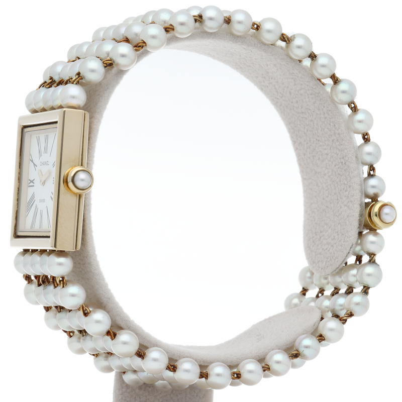 シャネルのエレガントなデザインが人気の「マドモアゼル」。シンプルなインデックスにブレスレットにはパールが施された豪華な1本。