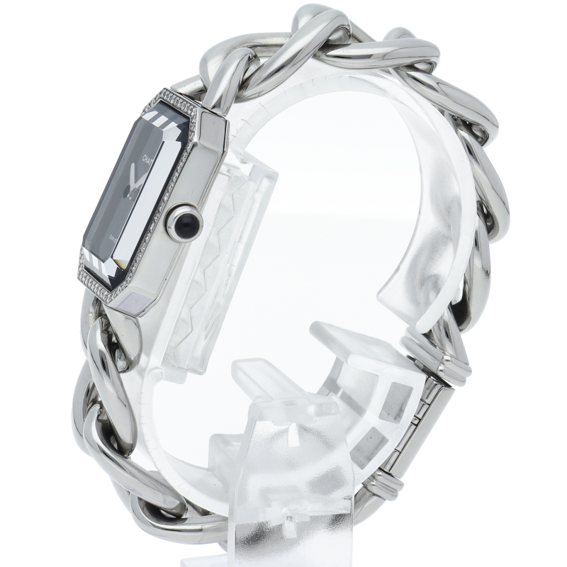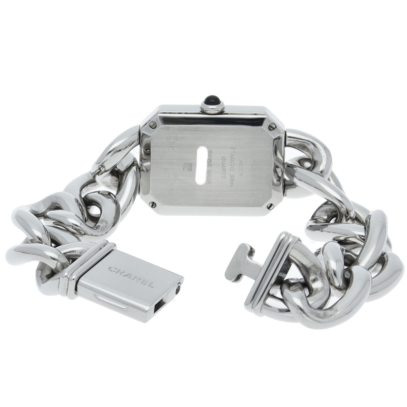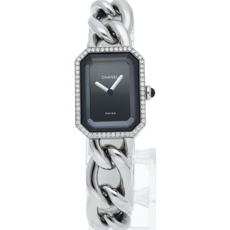 シャネルウォッチの定番モデル、プルミエールです。ステンレスチェーン型のブレスがオシャレで気品溢れる1本です。