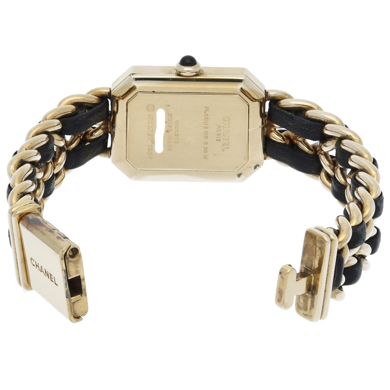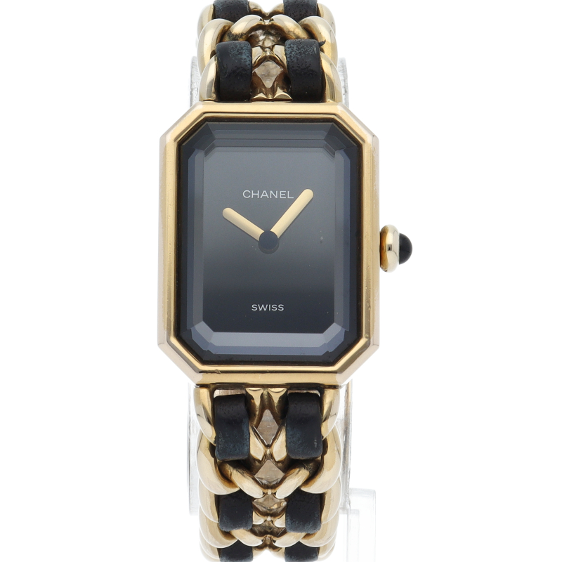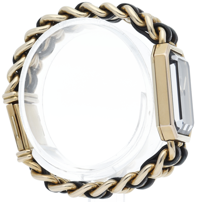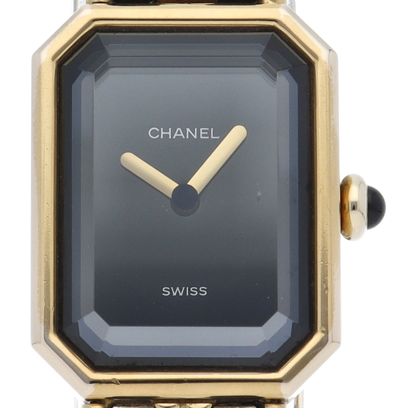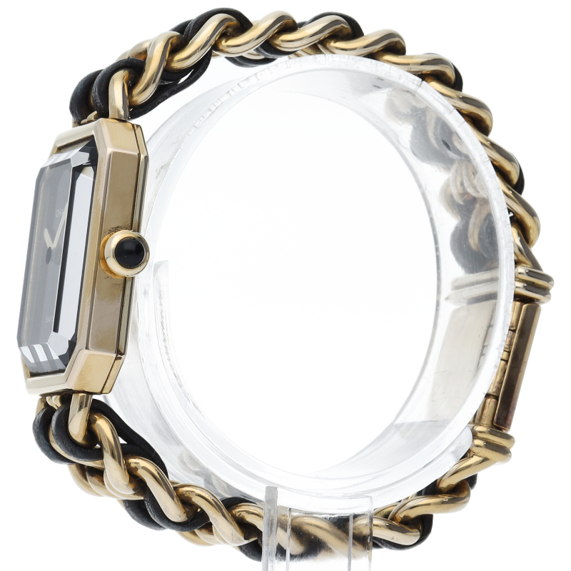 気品溢れるシャネルウォッチの定番モデルでプルミエールです。レザーがブレスに編みこまれたデザインが特徴的な1本。