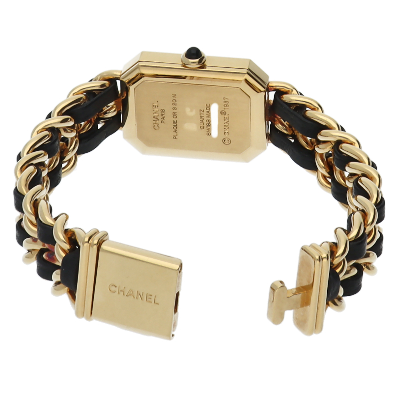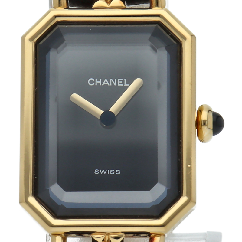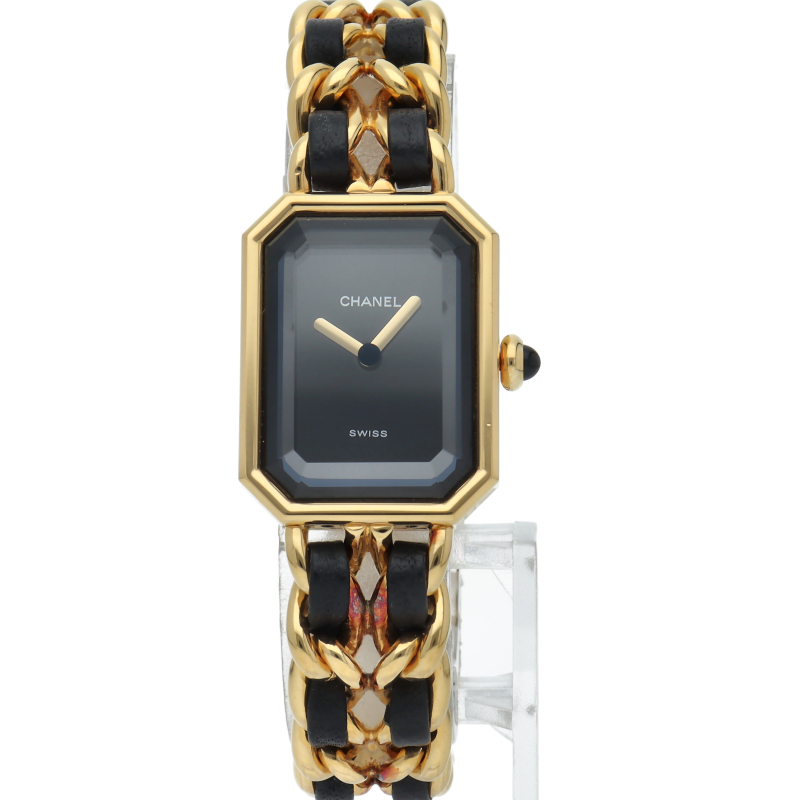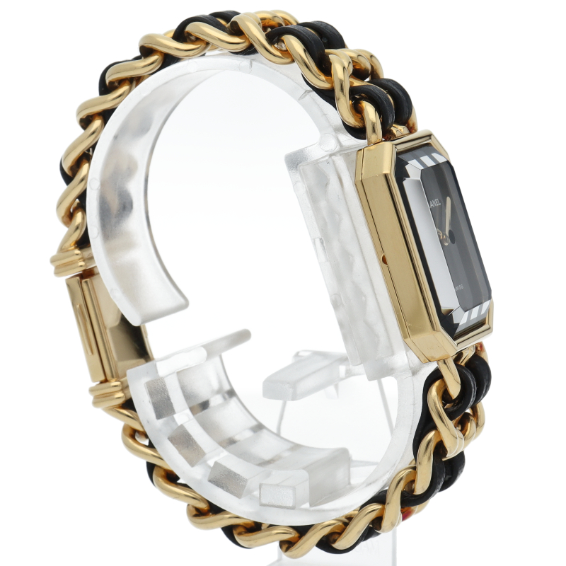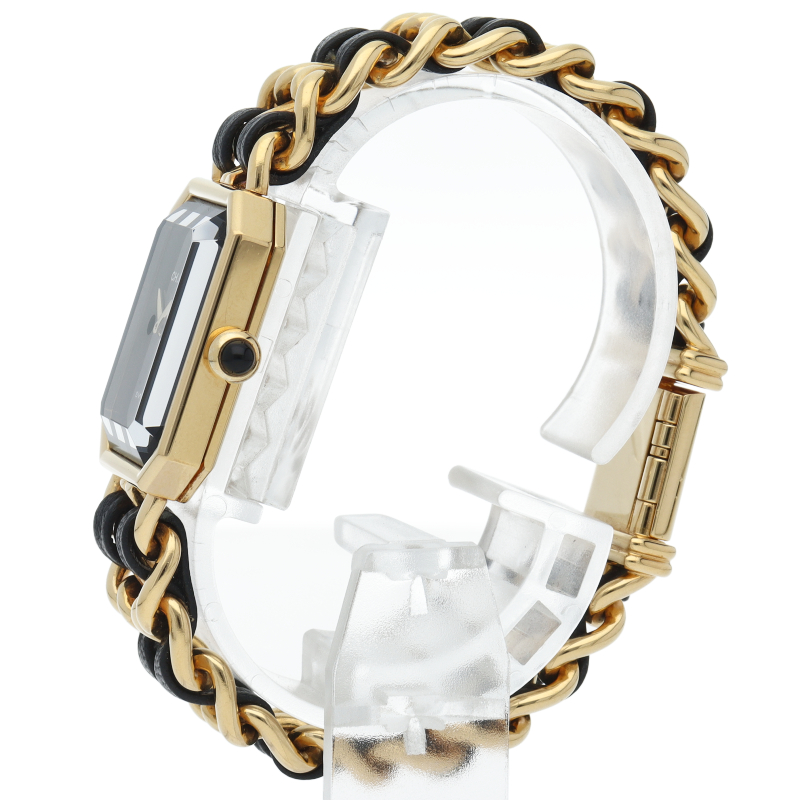 気品溢れるシャネルウォッチの定番モデルでプルミエールです。レザーがブレスに編みこまれたデザインが特徴的な1本。