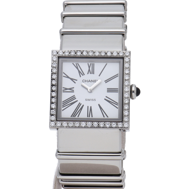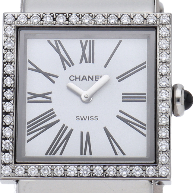 シャネルからスクエアケースにダイヤベゼルが美しさを放つ『マドモアゼル』です。スタイリッシュでファッションのアクセントに、ダイヤベゼルで高級感があり、どんな装いにも合わせやすいお勧めの逸品です。