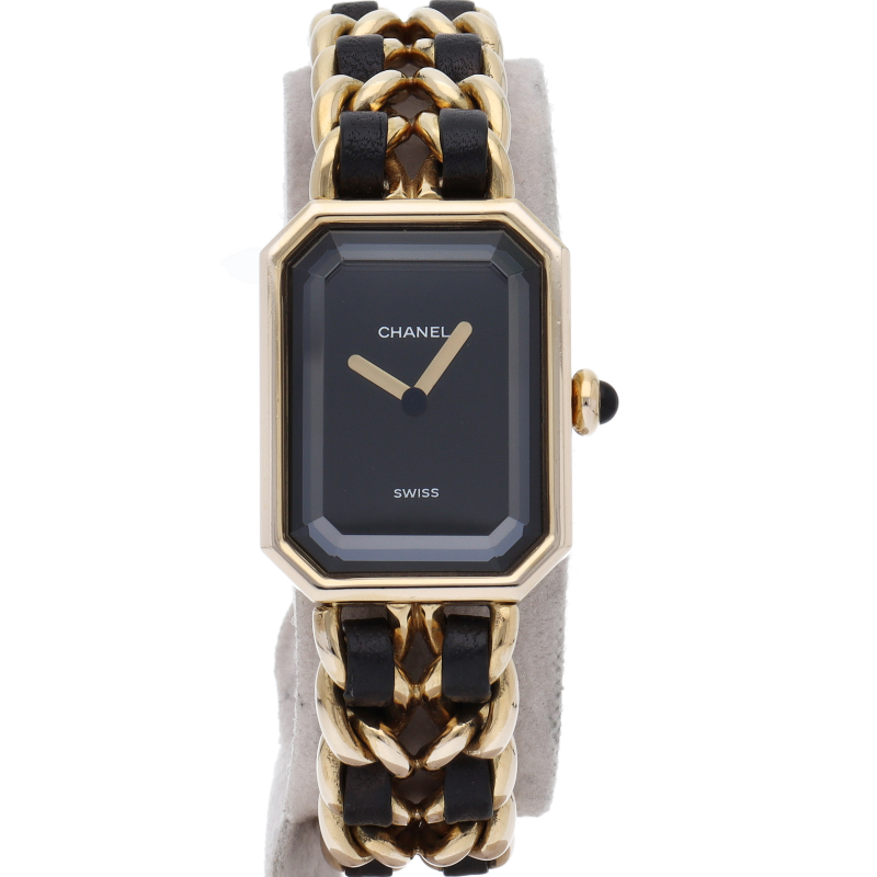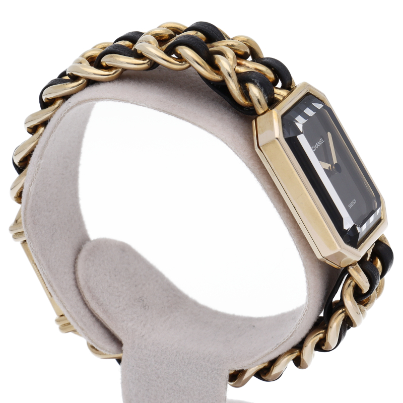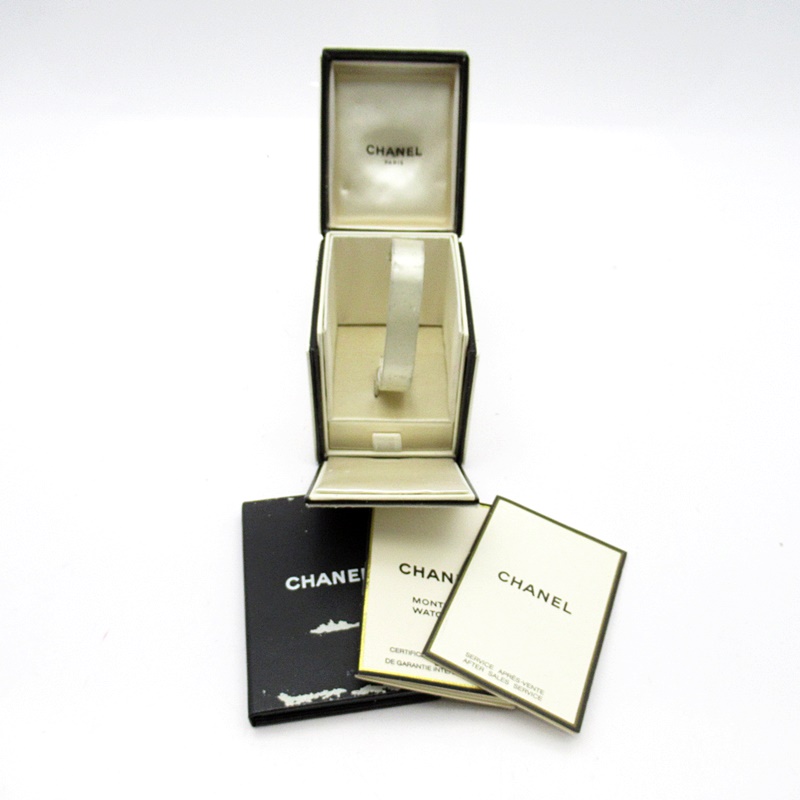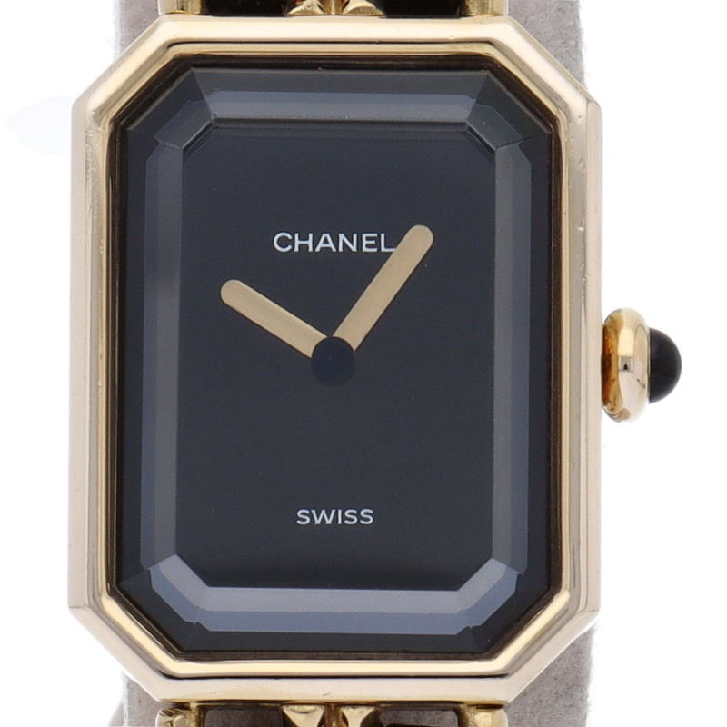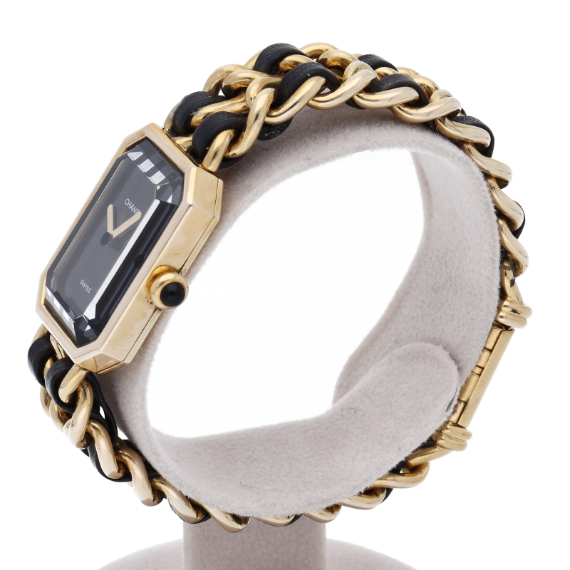 気品溢れるシャネルウォッチの定番モデルでプルミエールです。レザーがブレスに編みこまれたデザインが特徴的な1本。