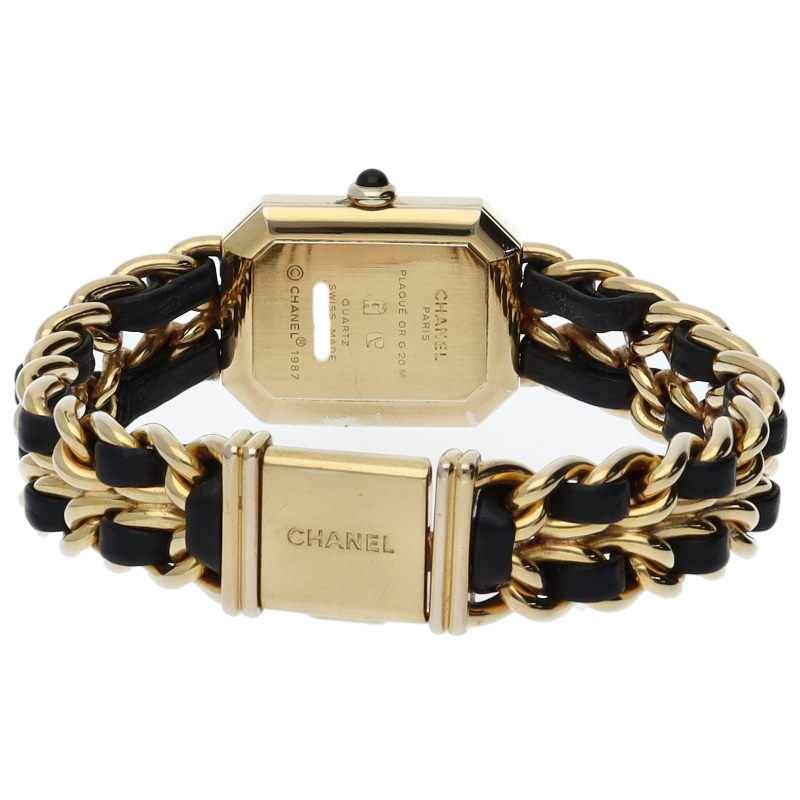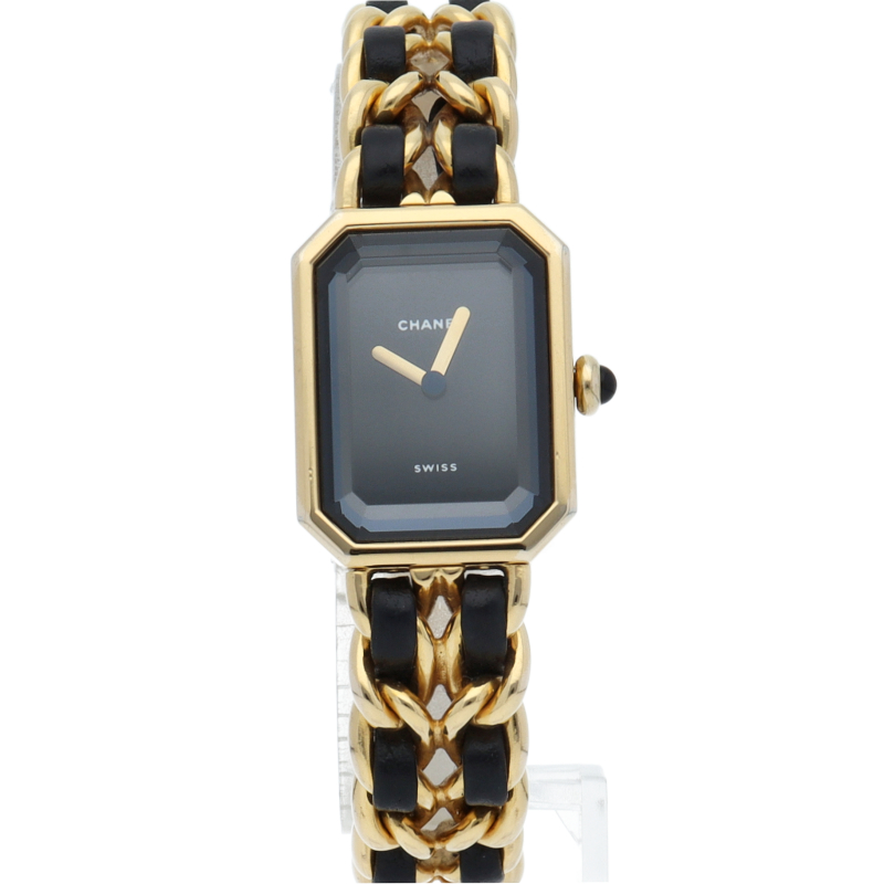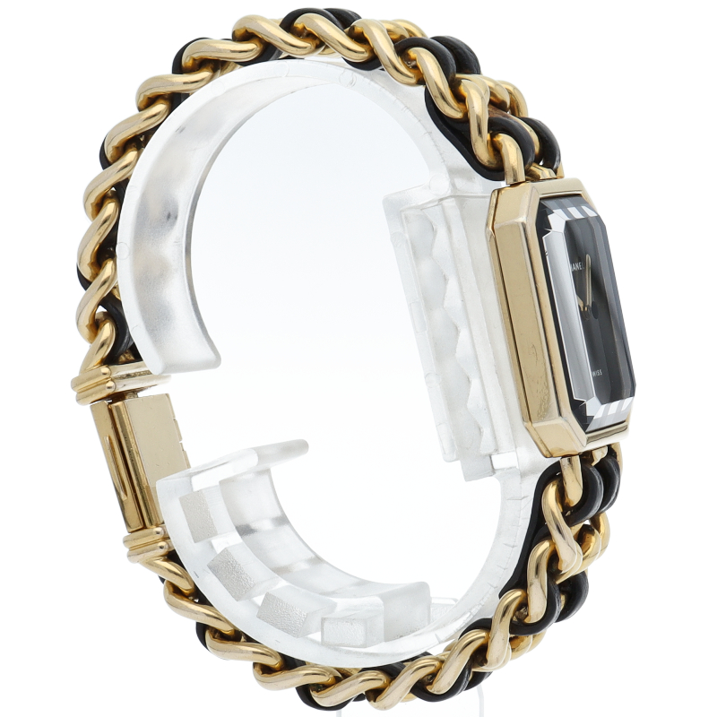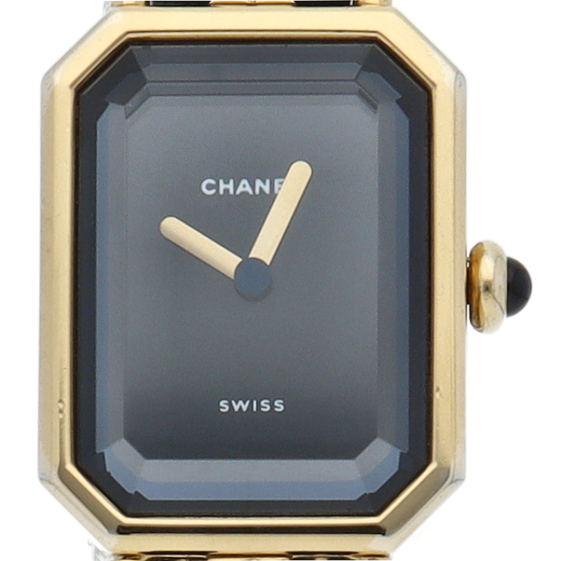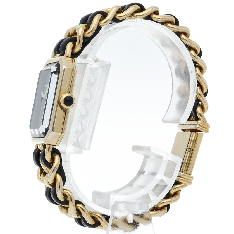 気品溢れるシャネルウォッチの定番モデルでプルミエールです。レザーがブレスに編みこまれたデザインが特徴的な1本。