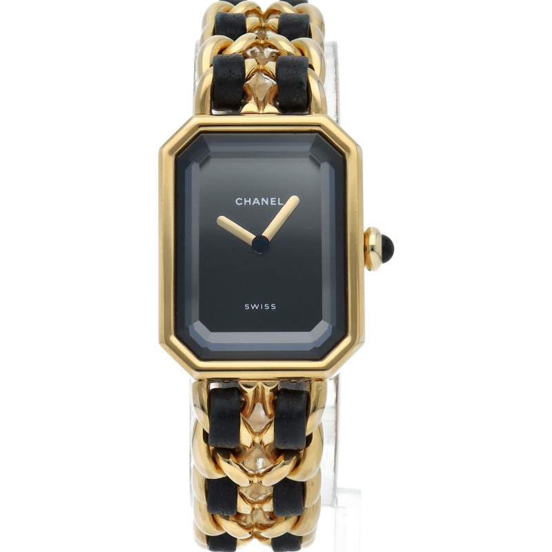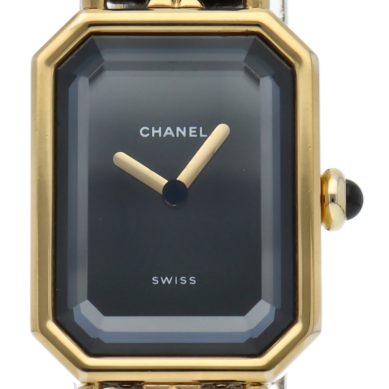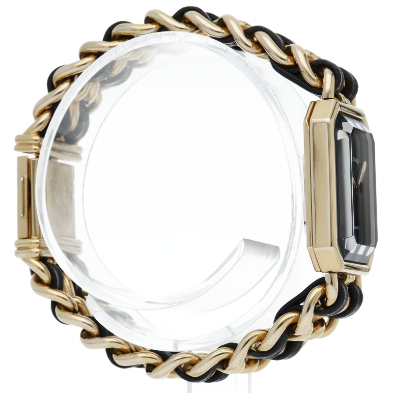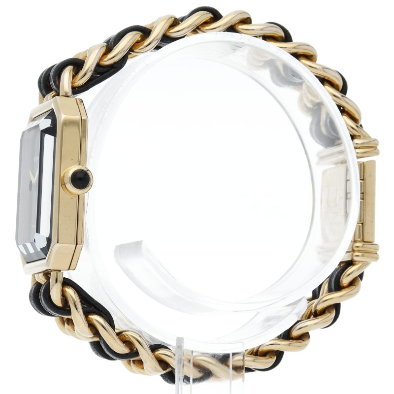 気品溢れるシャネルウォッチの定番モデルでプルミエールです。レザーがブレスに編みこまれたデザインが特徴的な1本。