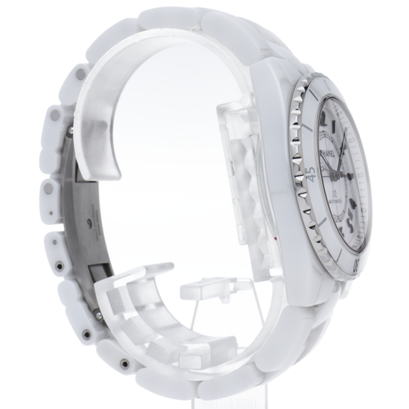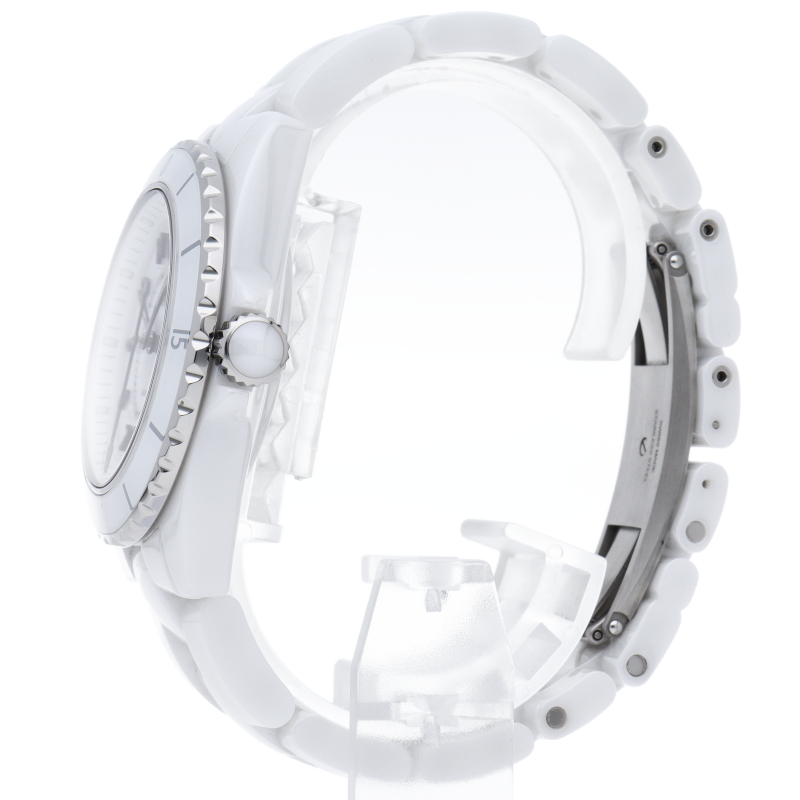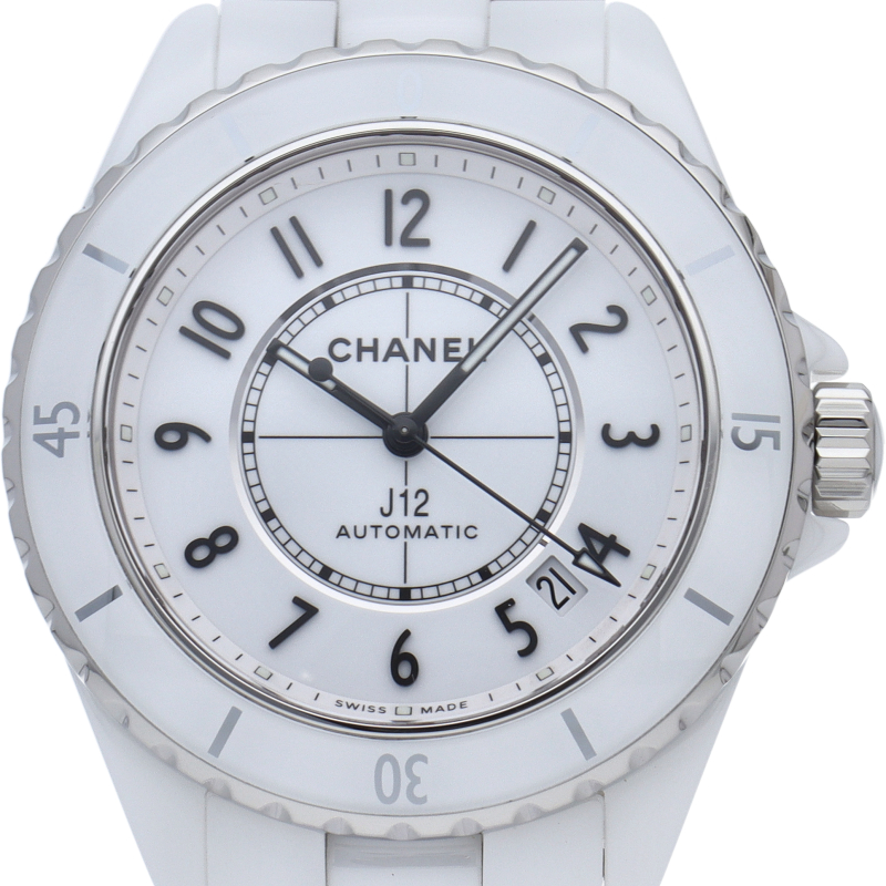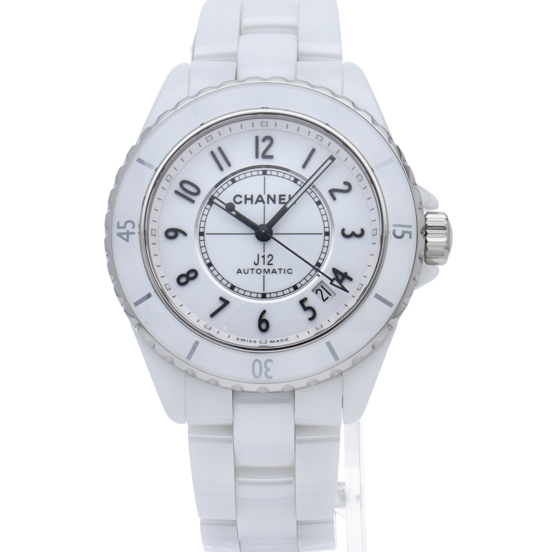 シャネルの人気フラッグシップウォッチで「J12」。異素材で傷がつきにくく独特な光沢感をもつセラミックをうまくデザインに融合させた1本。こちらは“J12”の2019年発表モデルです。ダイアルの幅が広がり、インデックスもセラミック製に変更され、より視認性が良くなっています。シャネル独自の新しい自動巻きムーブメント「キャリバー 12.1」を搭載。