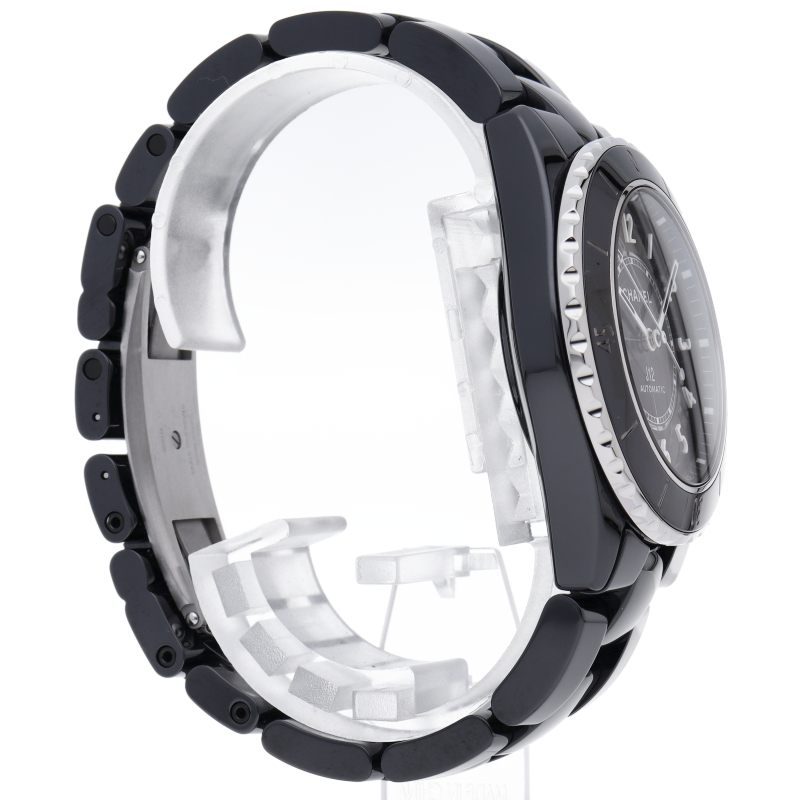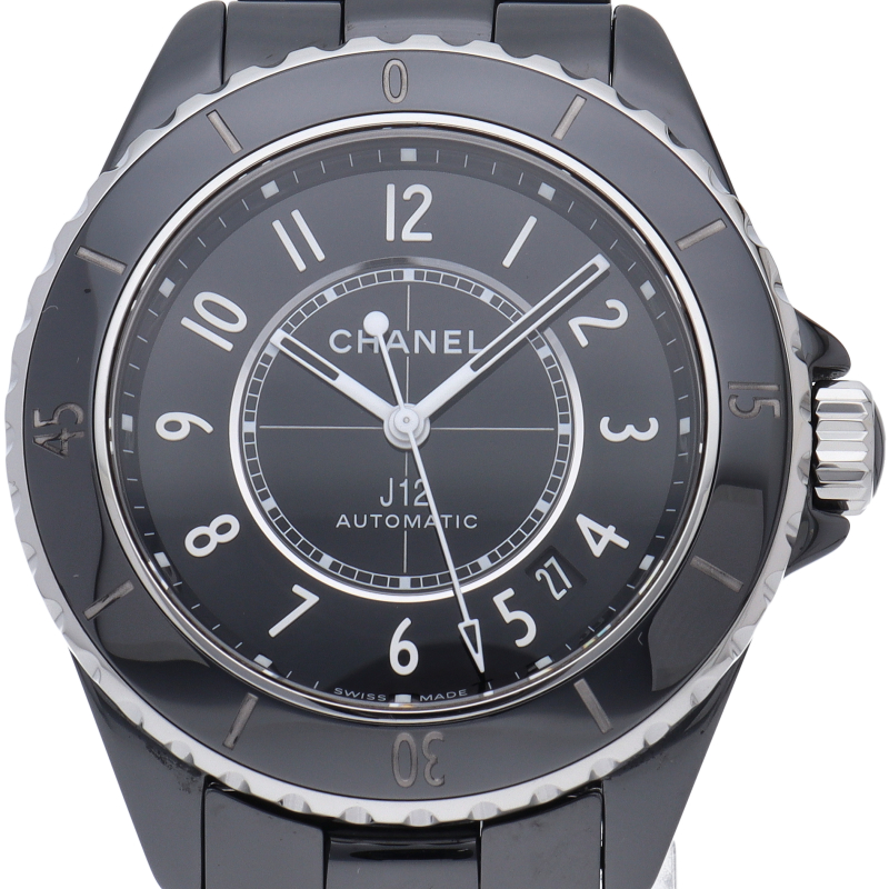 シャネルの人気フラッグシップウォッチで「J12」。異素材で傷がつきにくく独特な光沢感をもつセラミックをうまくデザインに融合させた1本。ムーブメントには高精度で70時間のロングパワーリザーブを確保した自社開発キャリバー12.1を搭載しています。