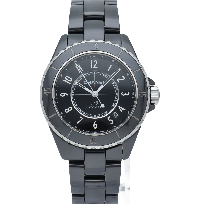 シャネルの人気フラッグシップウォッチで「J12」。異素材で傷がつきにくく独特な光沢感をもつセラミックをうまくデザインに融合させた1本。ムーブメントには高精度で70時間のロングパワーリザーブを確保した自社開発キャリバー12.1を搭載しています。