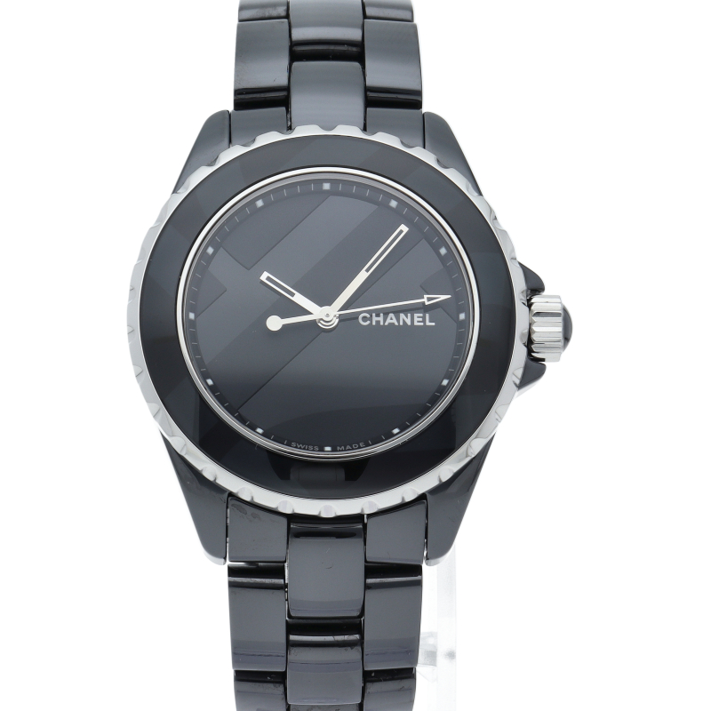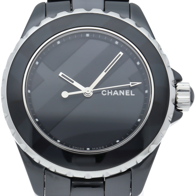 J12の「12」をベゼルと文字盤全体に大きくデザインした2018年のニューモデル。J12の特徴でもあったアラビアインデックスを排し、ベゼルにはデザインを優先して固定式ベゼルを採用。また、これまでは12時位置に在ったブランドロゴはシャネルでは珍しく3時に配置しました。