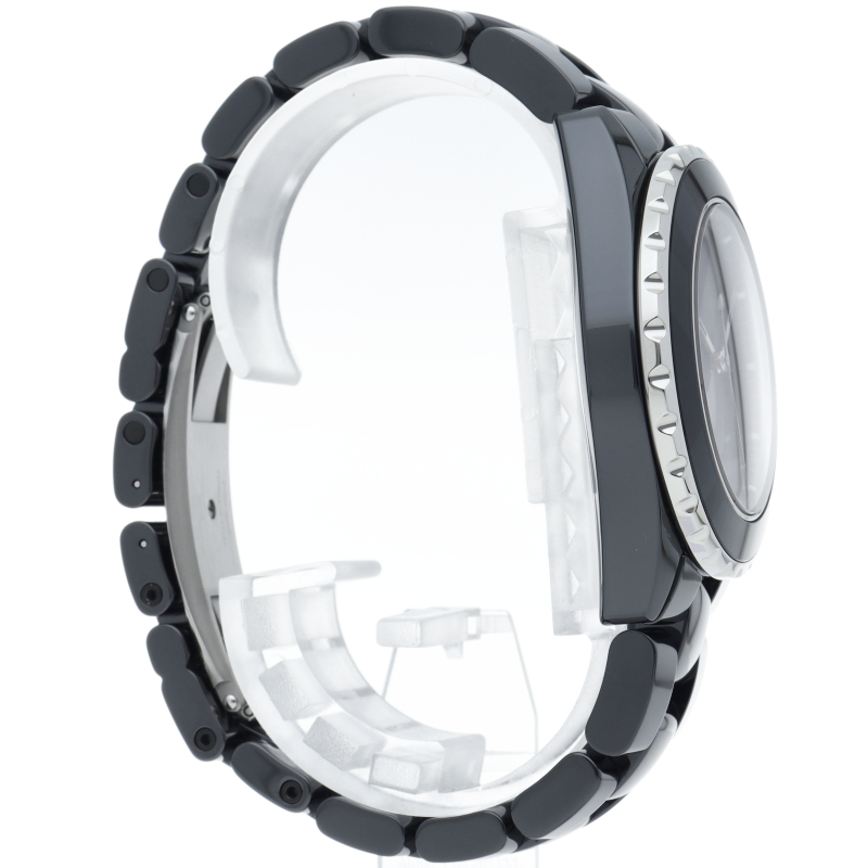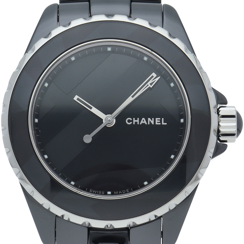 J12の「12」をベゼルと文字盤全体に大きくデザインした2018年のニューモデル。J12の特徴でもあったアラビアインデックスを排し、ベゼルにはデザインを優先して固定式ベゼルを採用。また、これまでは12時位置に在ったブランドロゴはシャネルでは珍しく3時に配置しました。