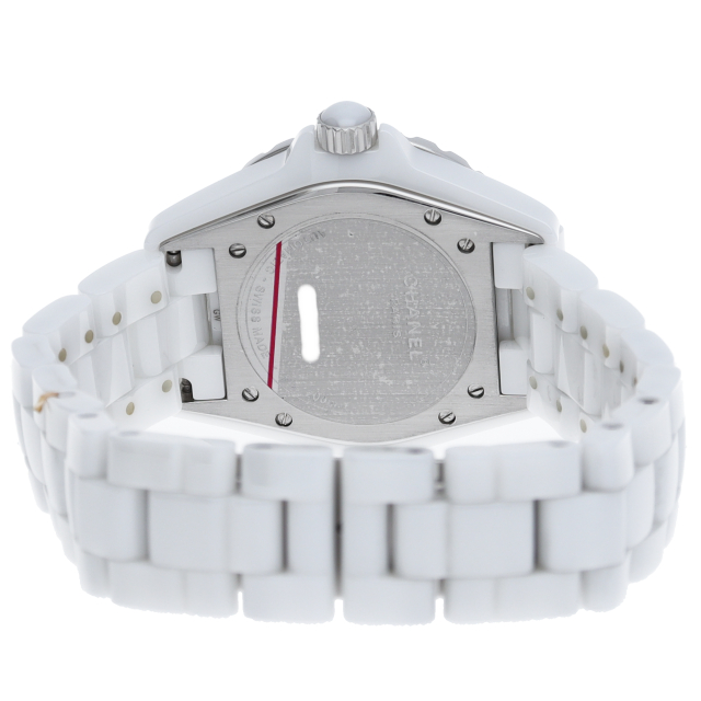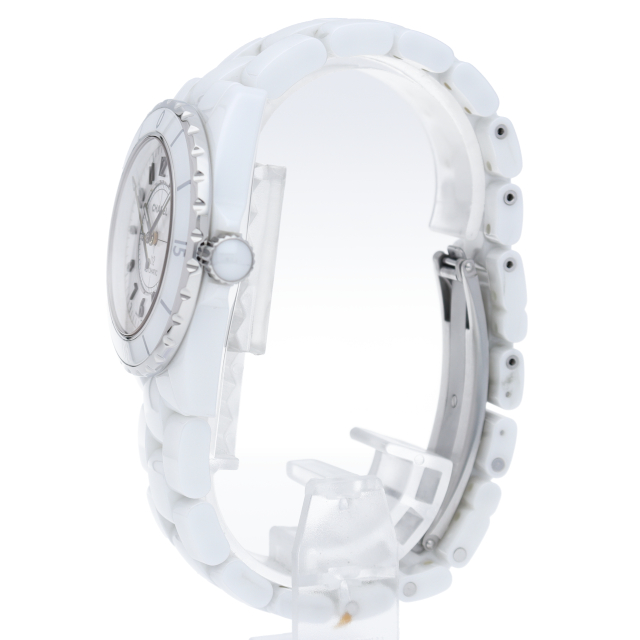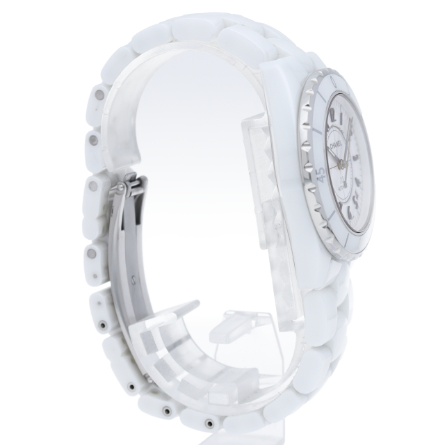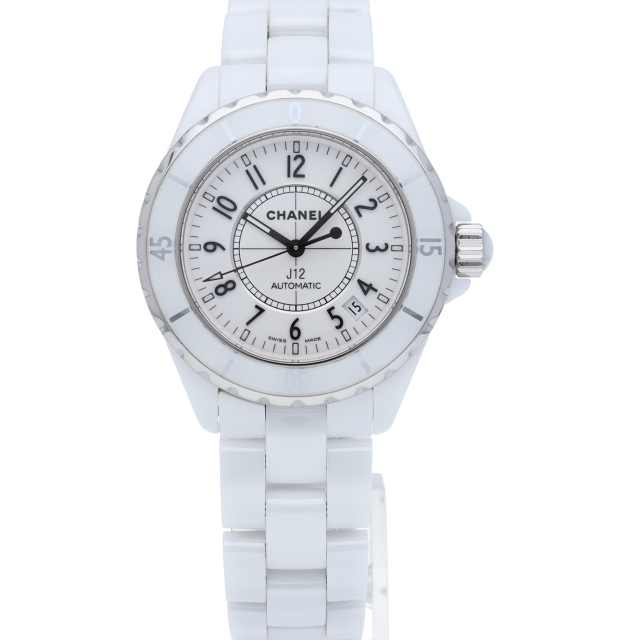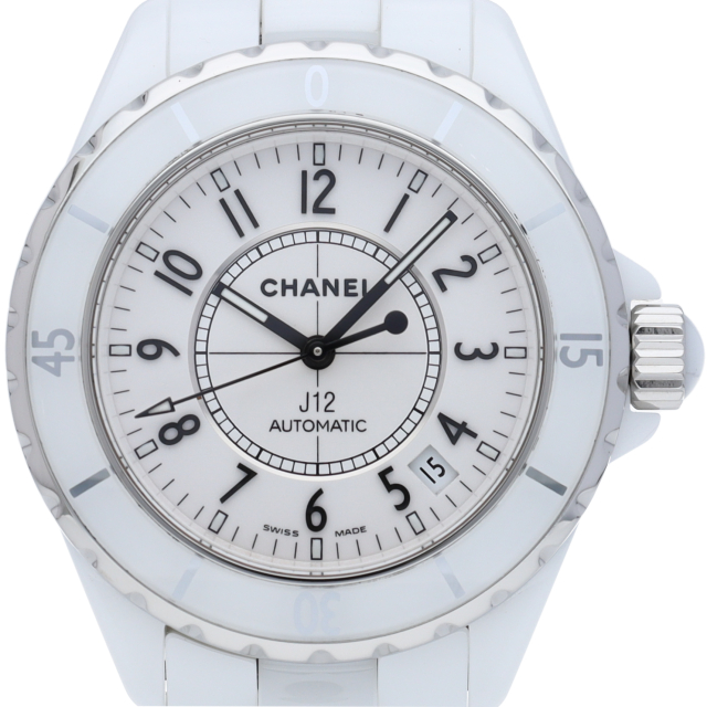 シャネルの人気フラッグシップウォッチで「J12」。異素材で傷がつきにくく独特な光沢感をもつセラミックをうまくデザインに融合させた1本。
