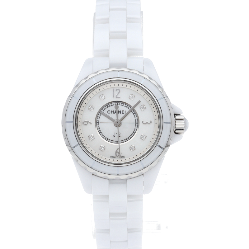 シャネルの人気フラッグシップウォッチで「J12」のケースサイズが29ミリとなった小振りな新作モデル。文字盤には8Pダイヤが施され高級感も兼ね備えた1本。