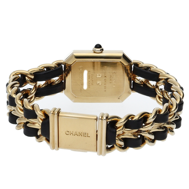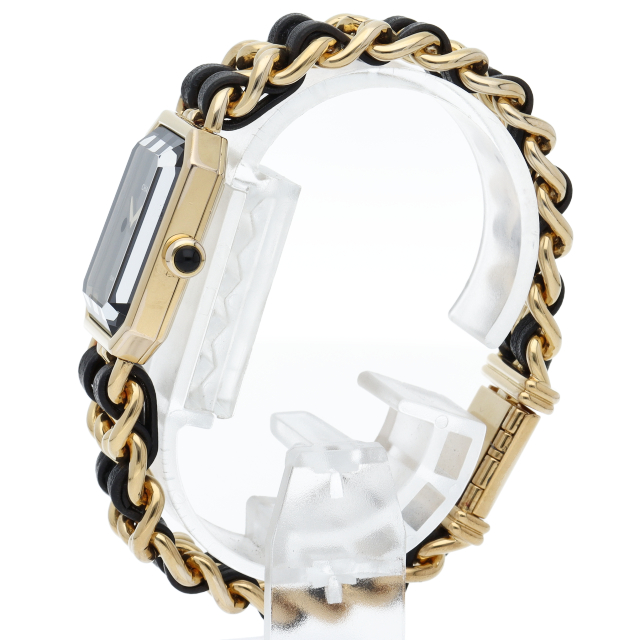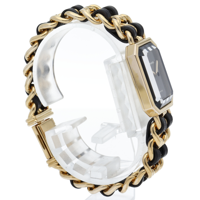 気品溢れるシャネルウォッチの定番モデルでプルミエールです。レザーがブレスに編みこまれたデザインが特徴的な1本。