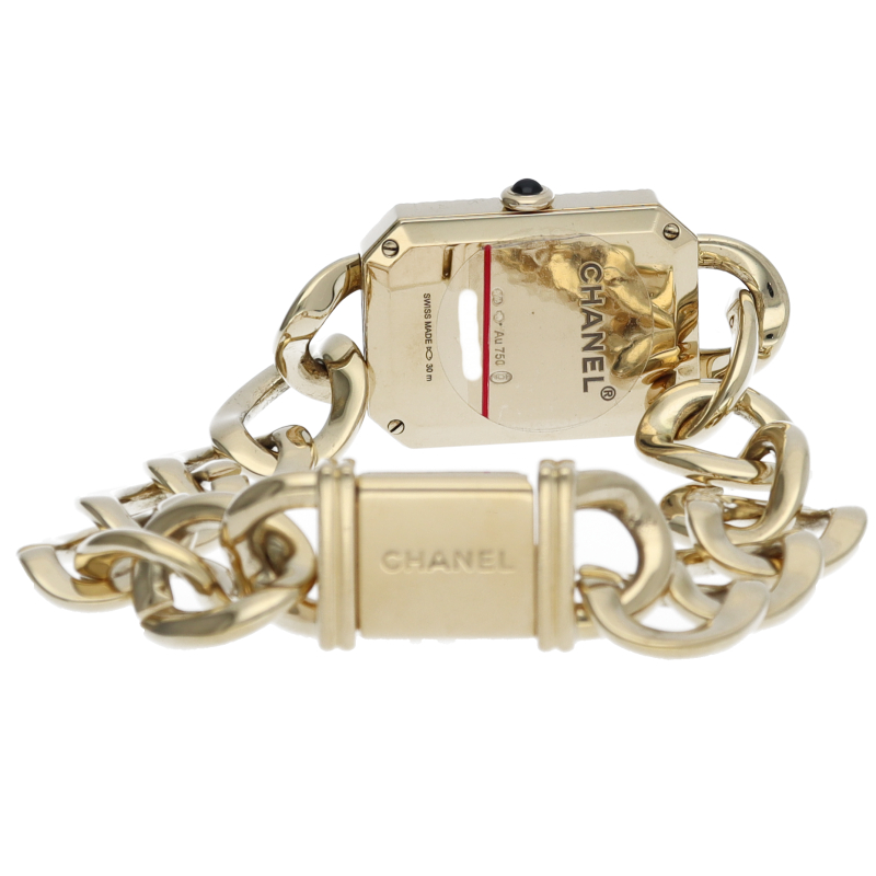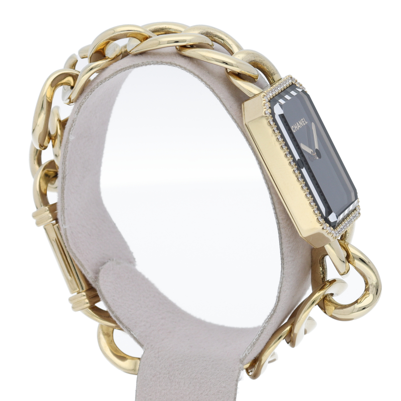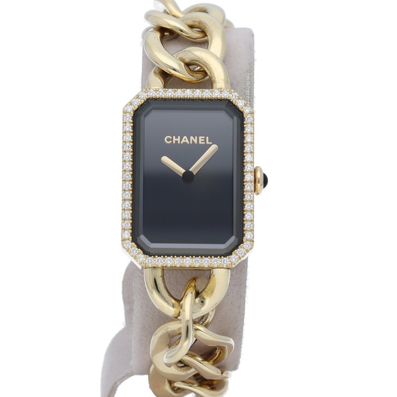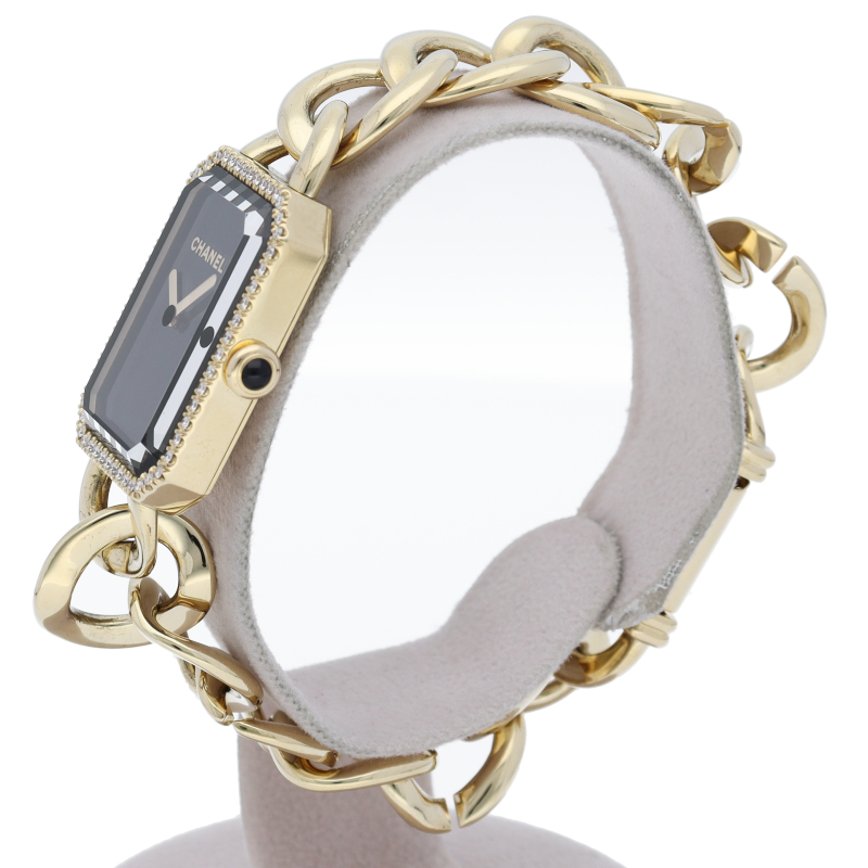 シャネルの人気シリーズ「プルミエール」。オートクチュールの世界においてアトリエ主任の女性を意味するこの時計は、シャネルがブティックを構えるヴァンドーム広場の形とシャネルのアイコンであるシャネルN°5のボトルストッパーからインスパイアーを受けデザインされました。